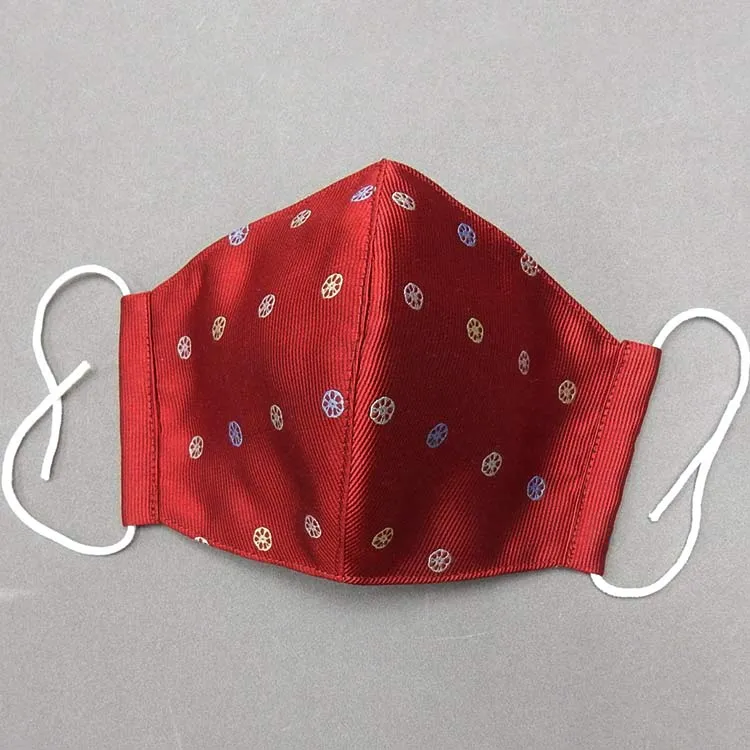 布マスク 立体カラス 抗ウイルス抗菌 赤ワイン 愛西/レンコンドット ふじやま織ネクタイ生地使用 絹100% 日本製 AS-NB-MSK03