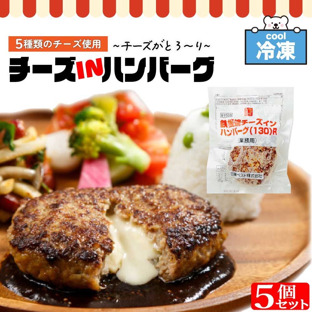 鉄板焼 チーズインハンバーグ 5種類のチーズ 日東ベスト 冷凍 130g×5個 ジョイグルメ JG 肉汁 業務用 湯煎 レンジ チーズ入り 「チーズインハンバーグ 」 SC