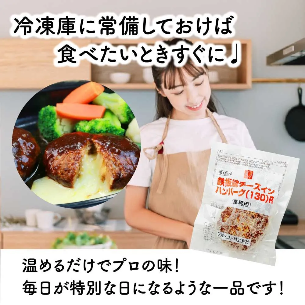 【栄養成分表示(1食130g当たり)】 ・エネルギー…287kcal ・たんぱく質…15.0g ・脂質…19.9g ・炭水化物…9.9g ・食塩相当量…1.8g === チーズインハンバーグ ハンバーグ 日東ベスト JG鉄板焼チーズイン 美味しい はんばーぐ 肉汁 こだわり 冷凍 食品 2025 最新 おかず 簡単 電子レンジ調理 夜食 香ばしい お徳用 時短 軽食 ランチ ディナー まかない 食事 レンチン ハンバーグヴィアンド 冷凍ハンバーグ