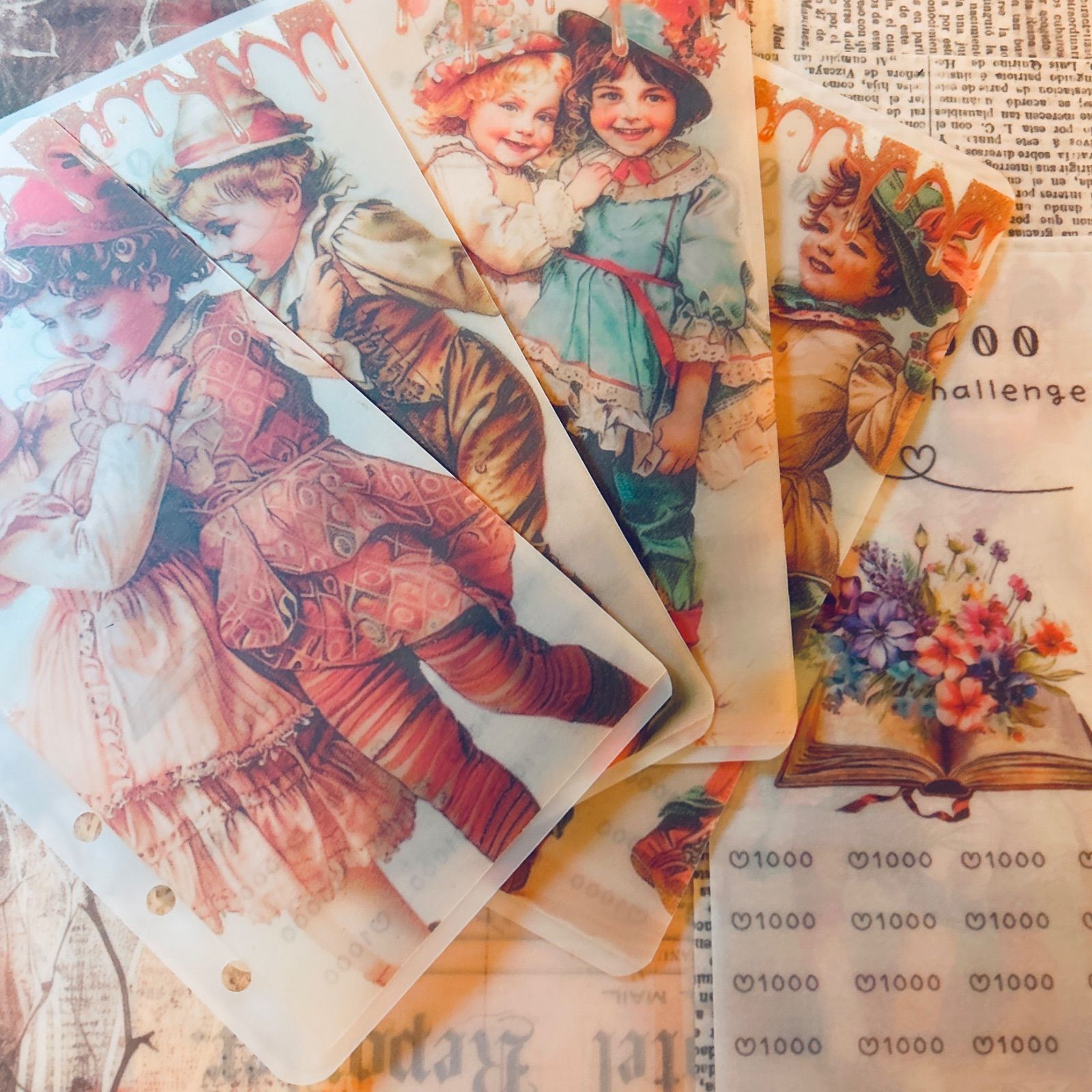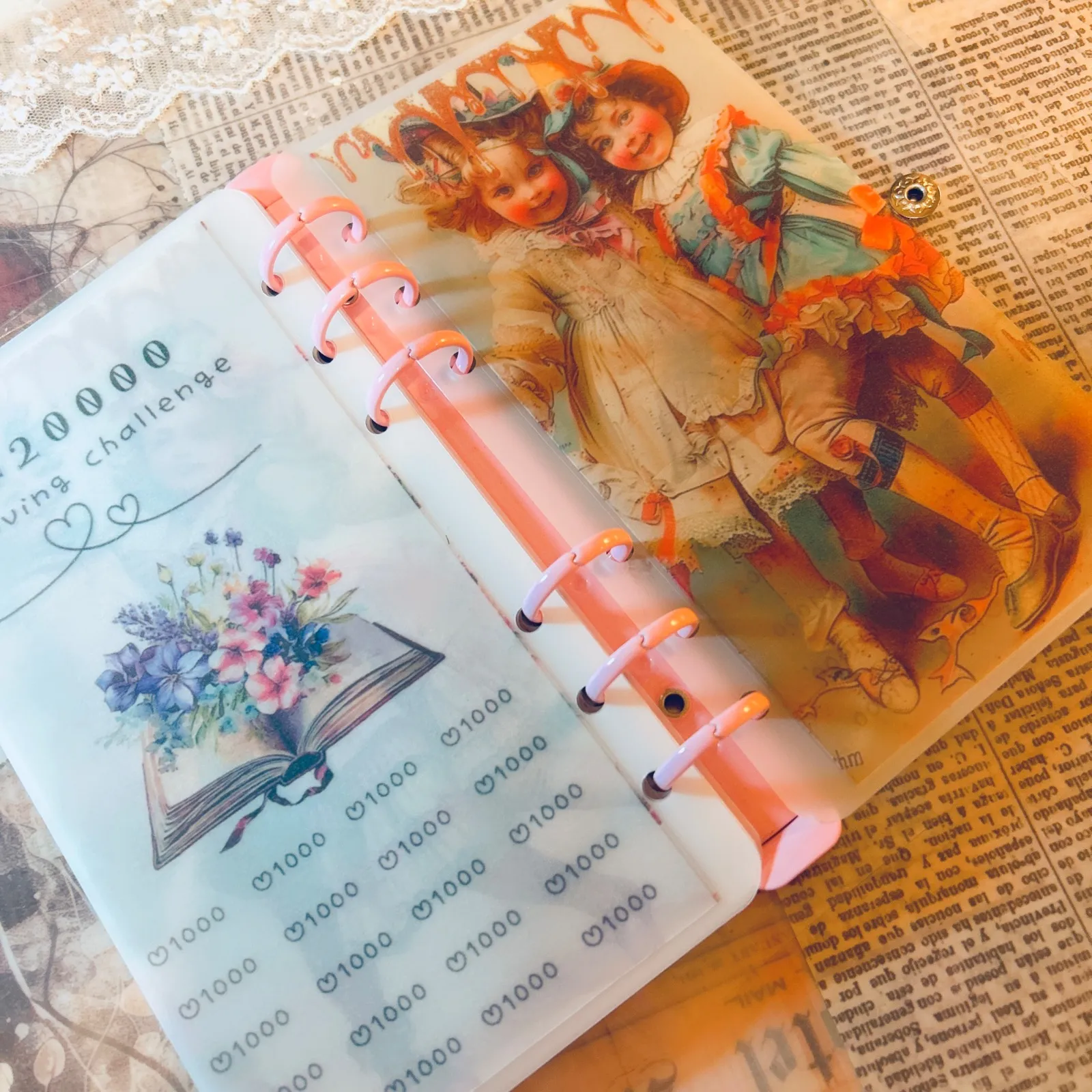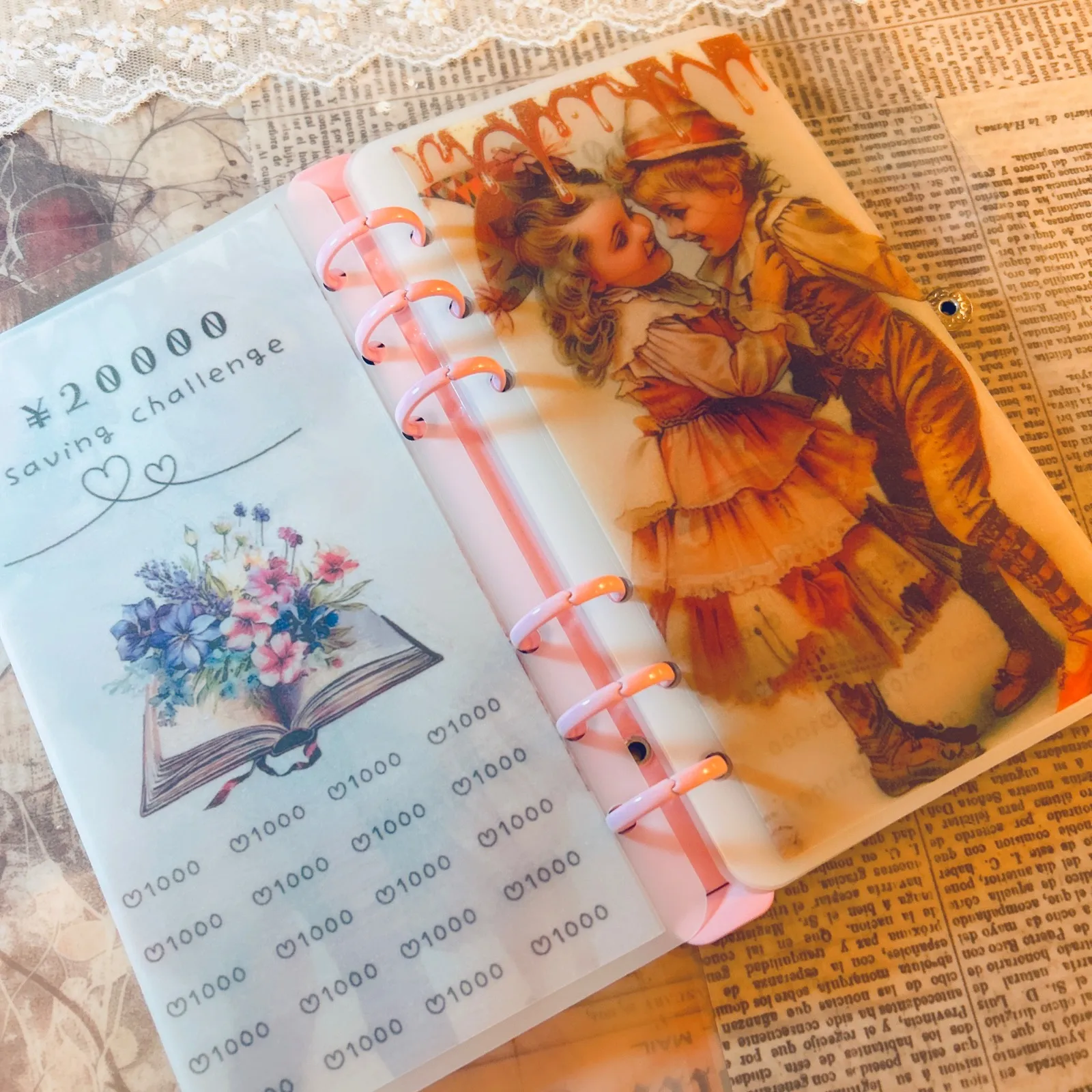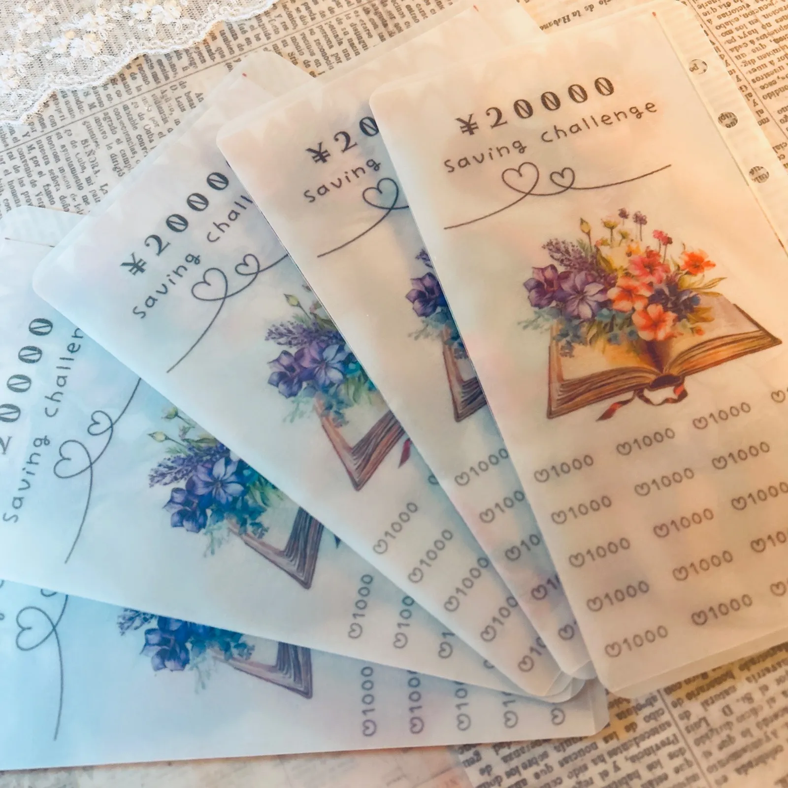 A6 savingリフィル 貯金チャレンジ 家計管理 5枚 ◎海外素材 貯金 バインダー 6穴対応 トレーシングペーパー 書き込み可能 ハンドメイド 封筒 韓国