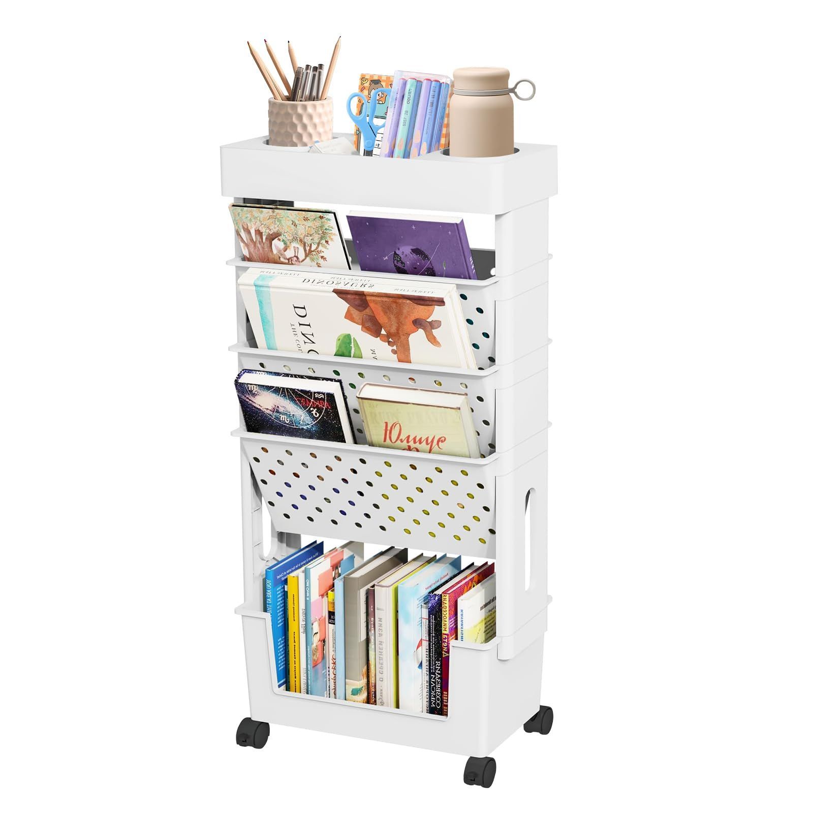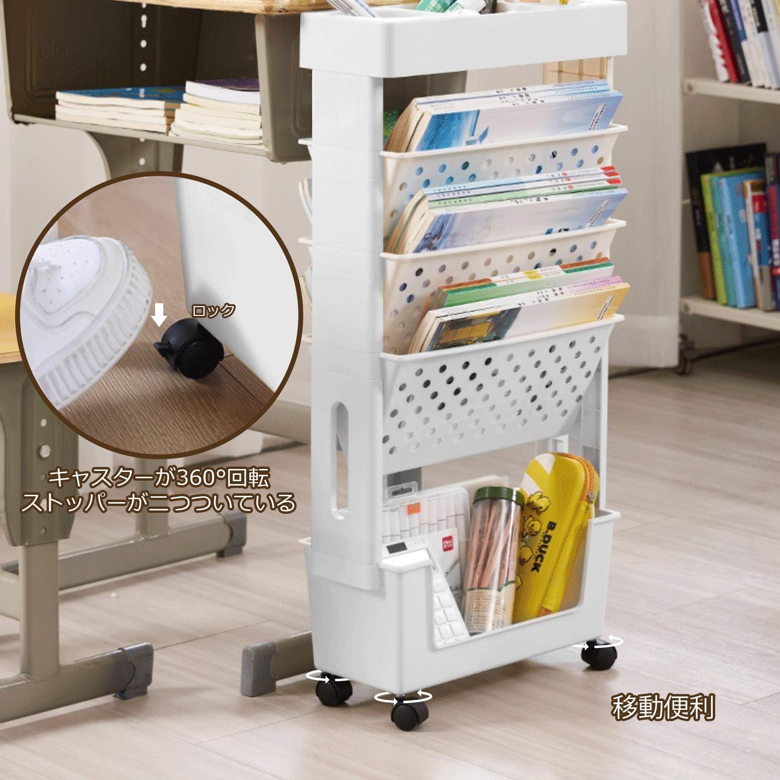 本棚 キャスター付き ファイルワゴン 教科書 収納 マガジンラック スリム 組立簡単 学生 ホワイト(幅37.5×奥行15×高さ78cm) (ホワイト)