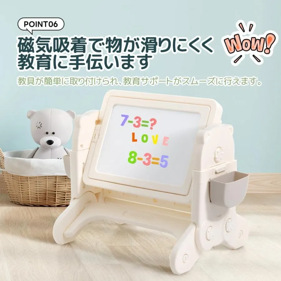 【◎04 水性ペン専用の磁気お絵かきボード】水性ペンで描ける磁気お絵かきボードを備え、お絵かきや創造的な遊びが楽しめます。