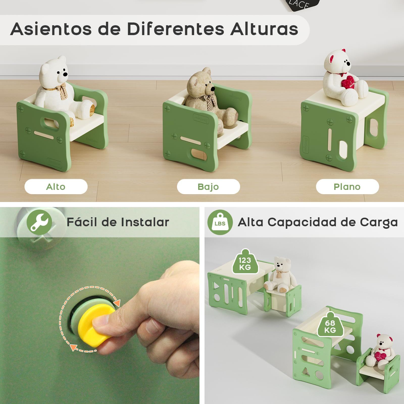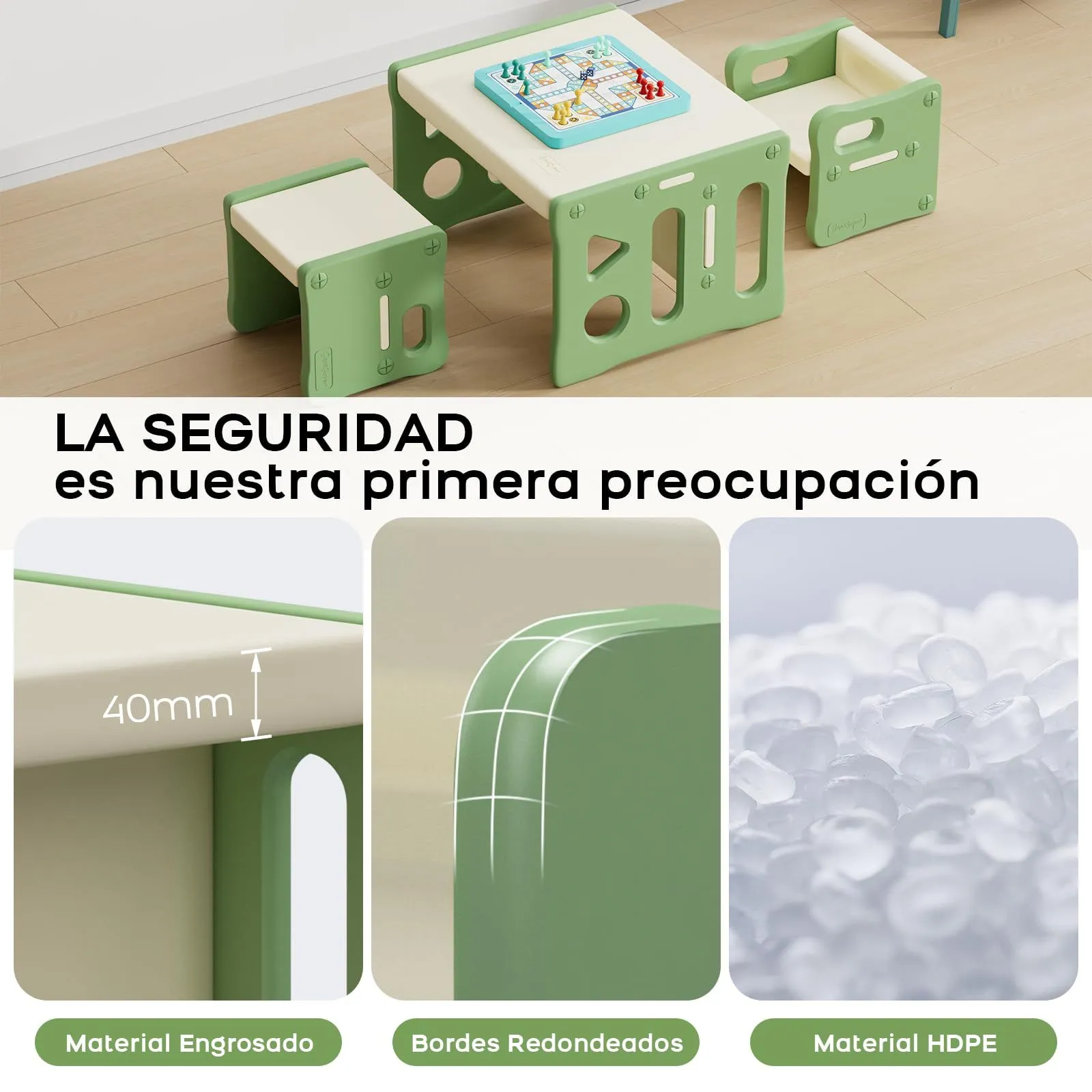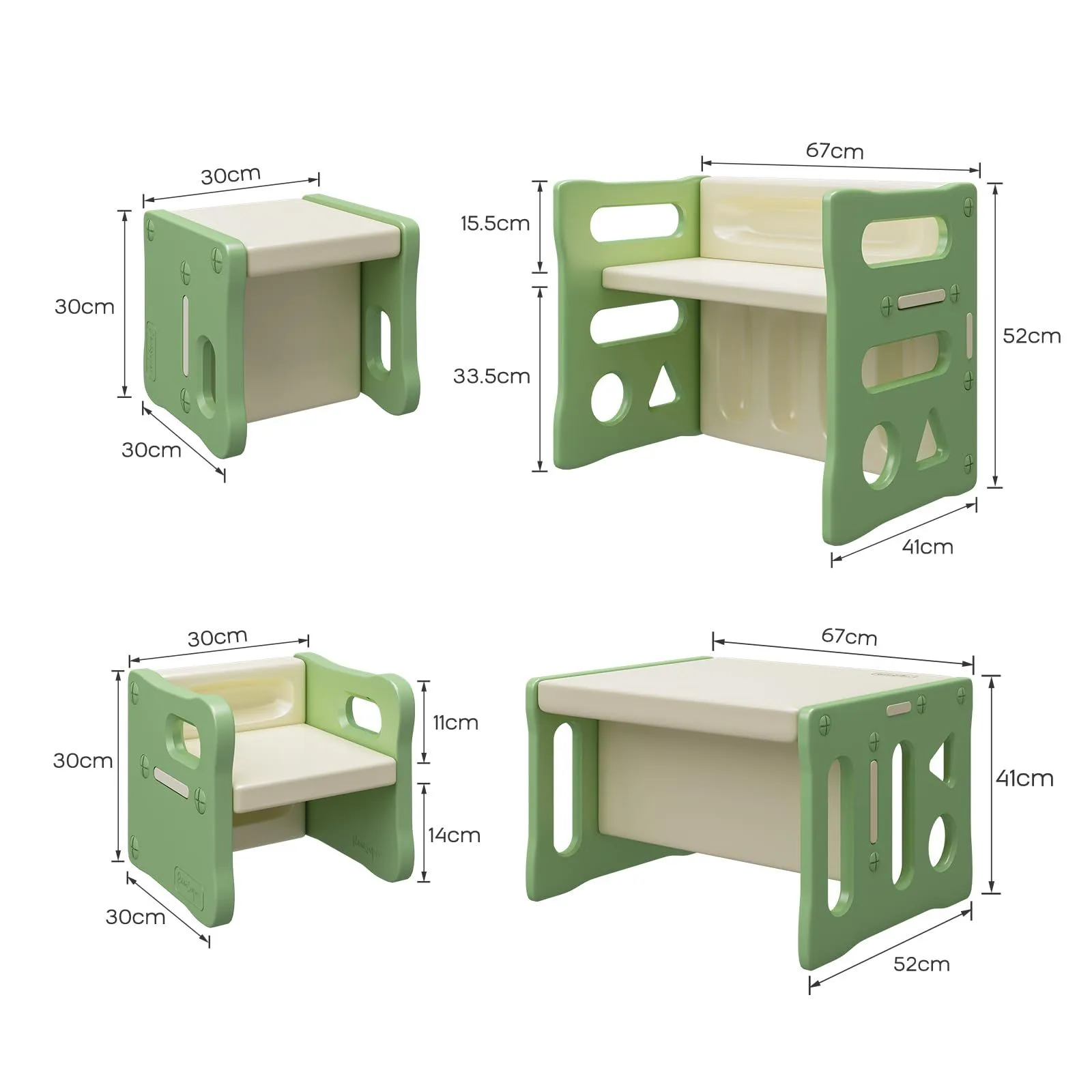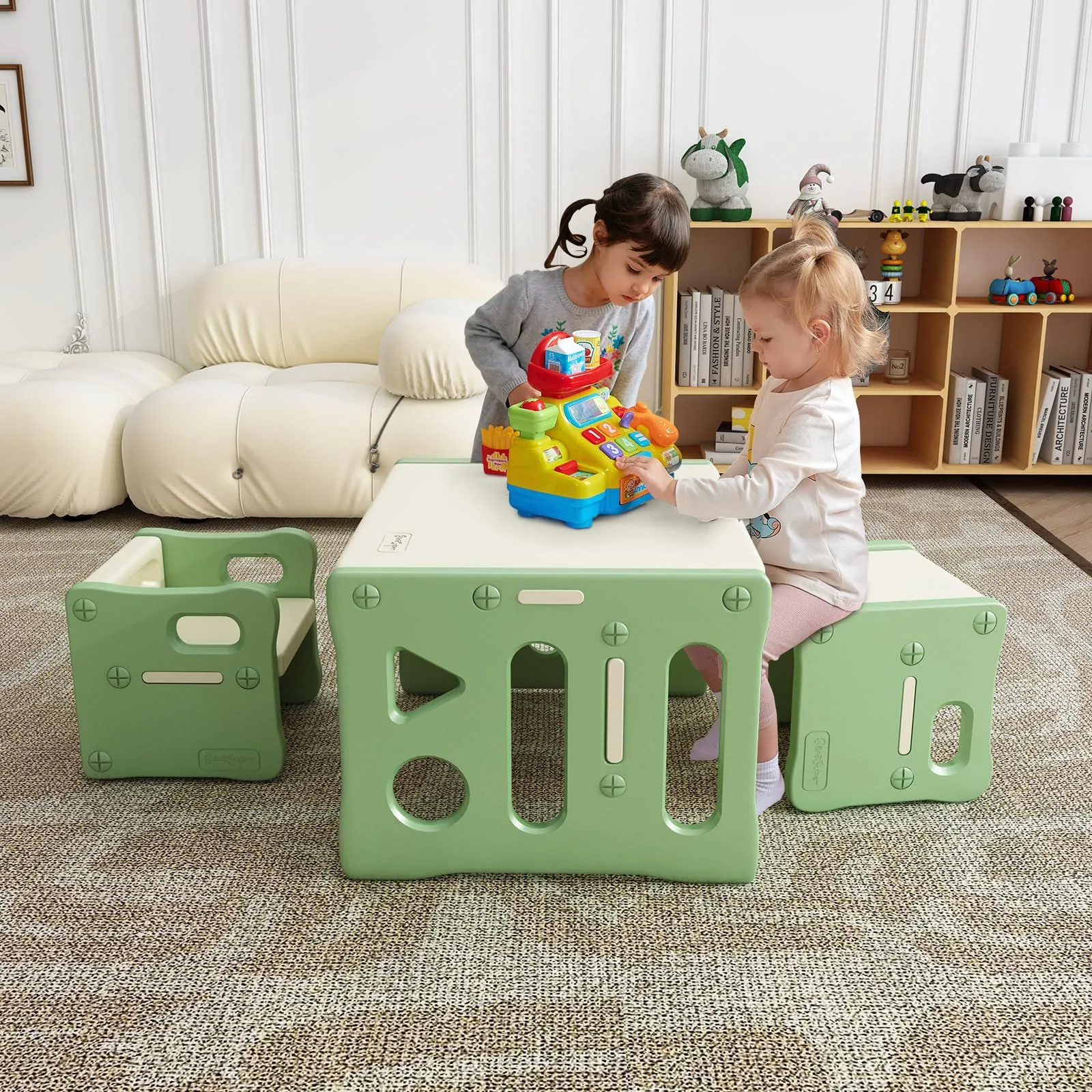 数量限定 リビング学習/絵かき/ダイニング/プレイセット 組立簡単 軽量収納 多機能プラスチック家具 グリーン アクティビティチェア お絵描きデスク 子供用テーブルと椅子3点セット BanaSuper