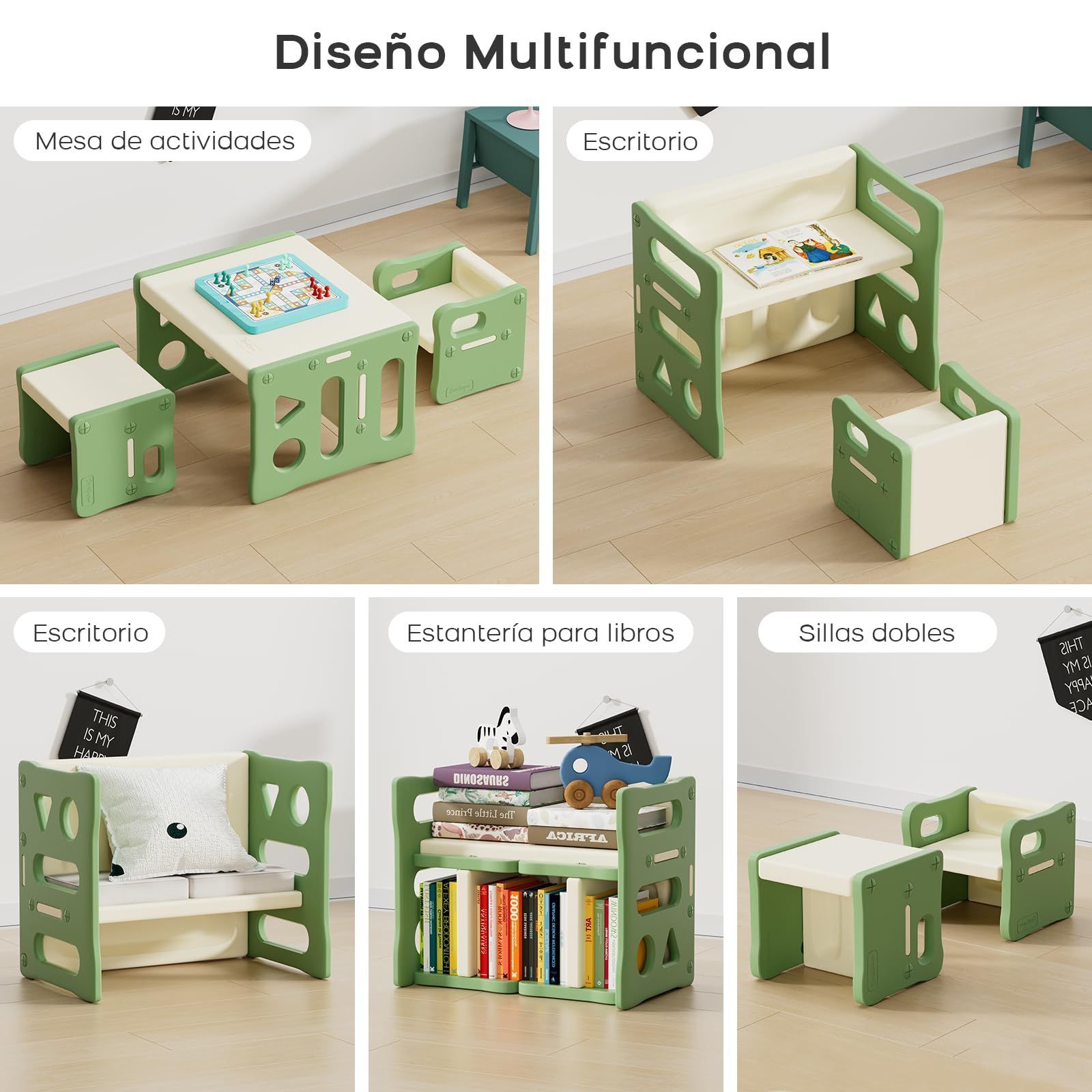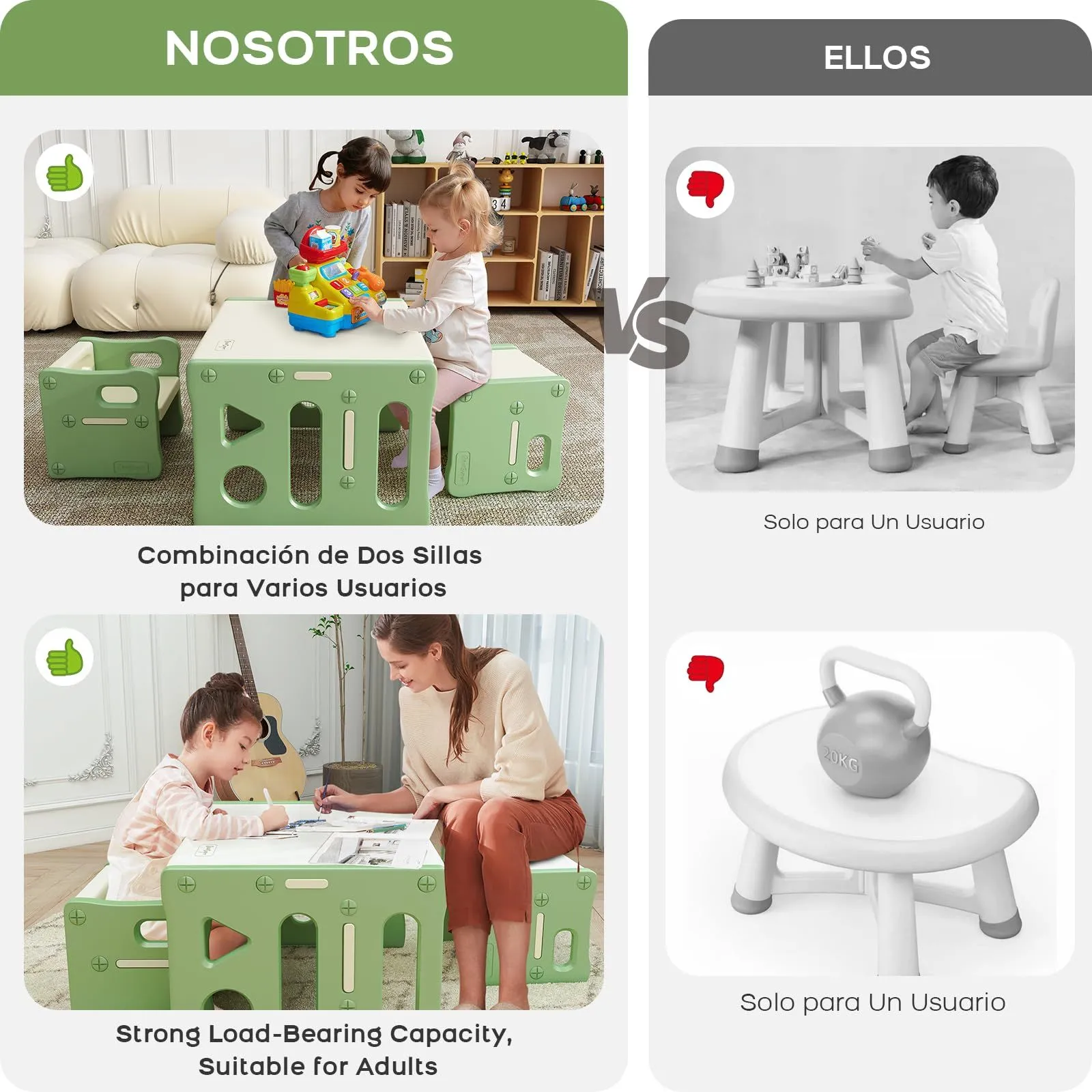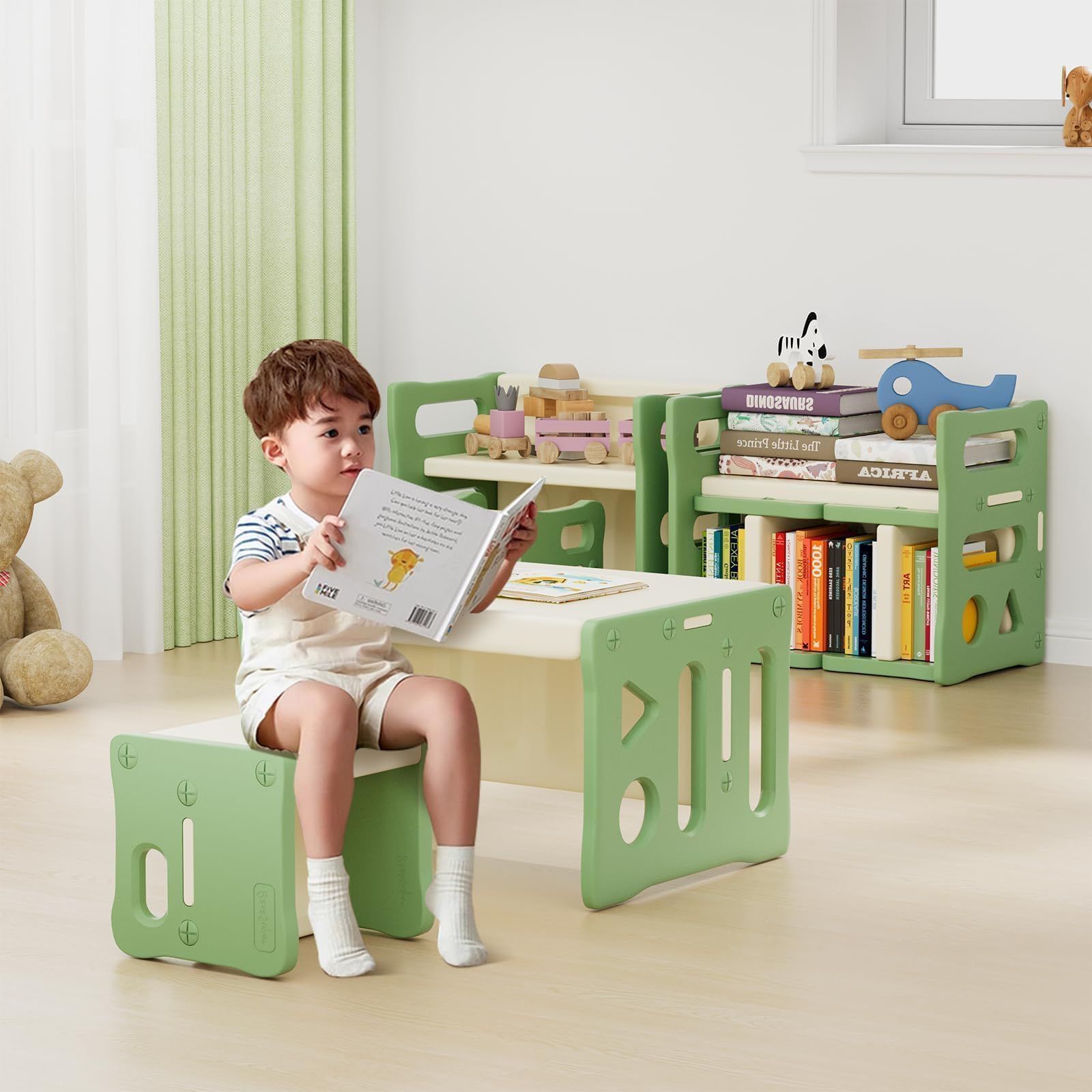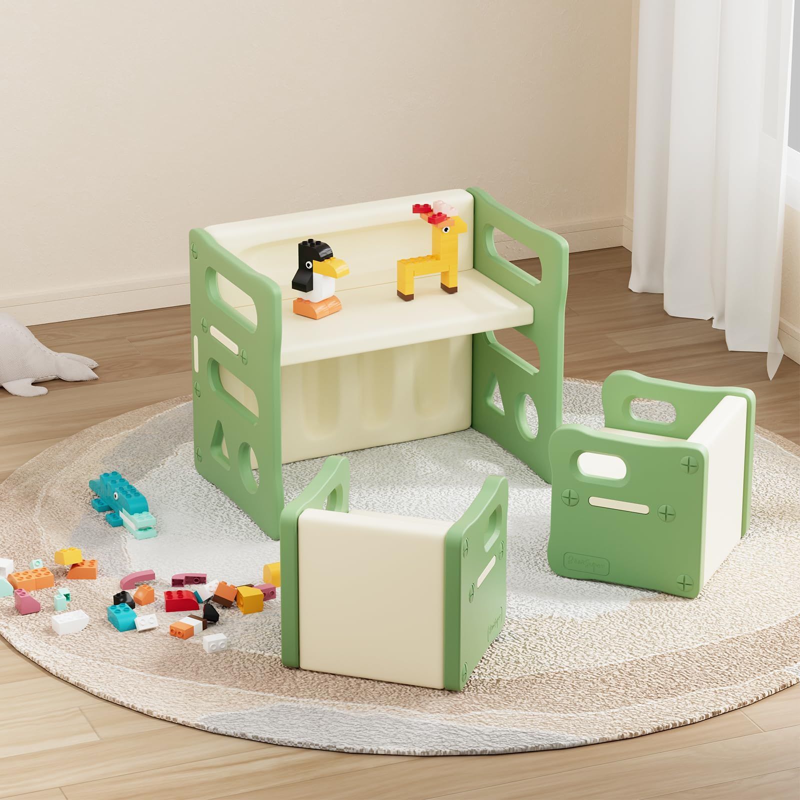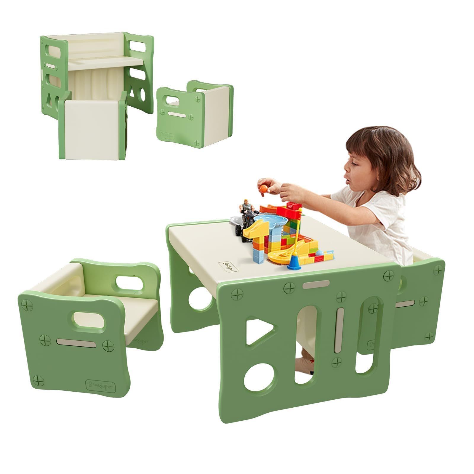 BanaSuper 子供用テーブルと椅子3点セット お絵描きデスク アクティビティチェア 多機能プラスチック家具 軽量収納 組立簡単 リビング学習/絵かき/ダイニング/プレイセット グリーン