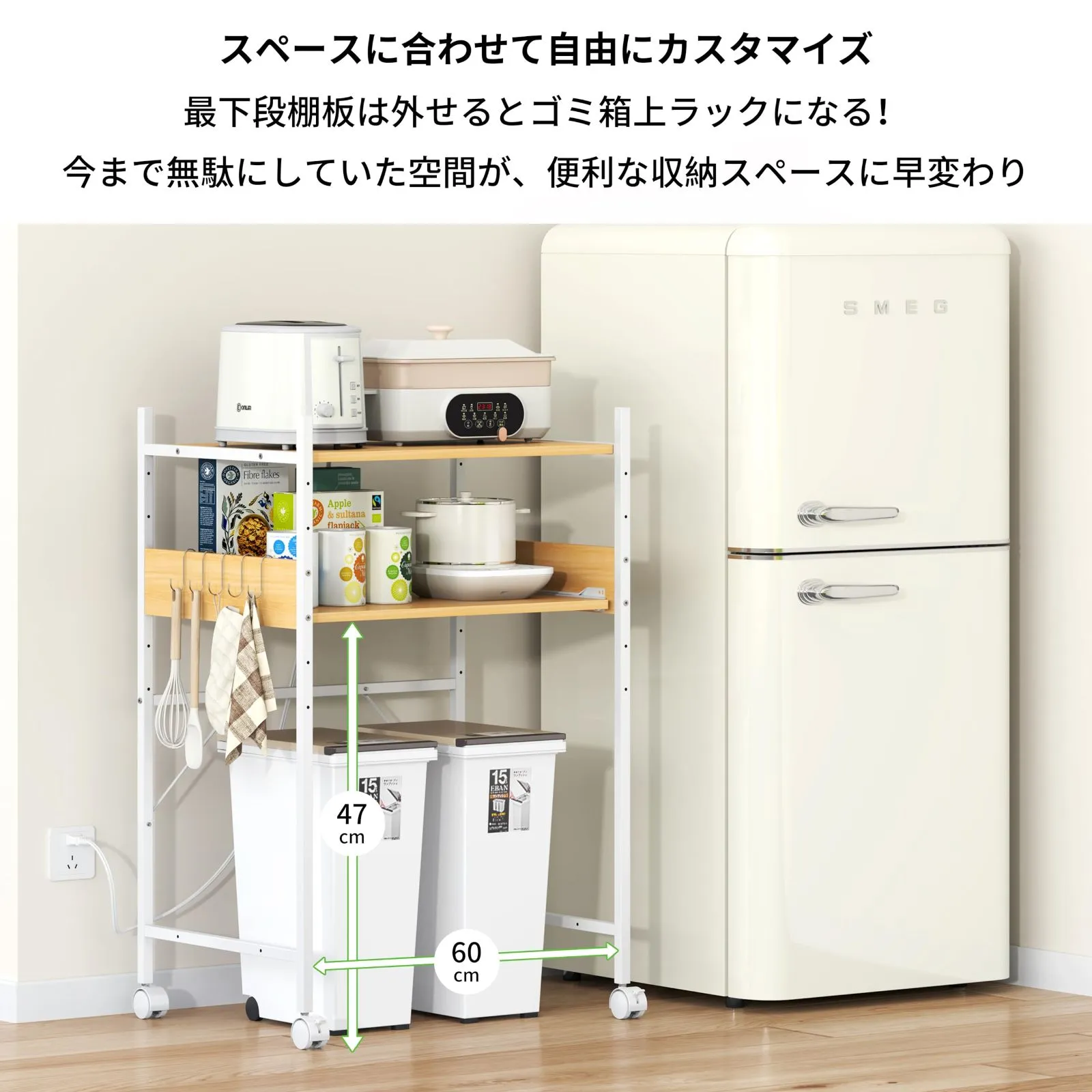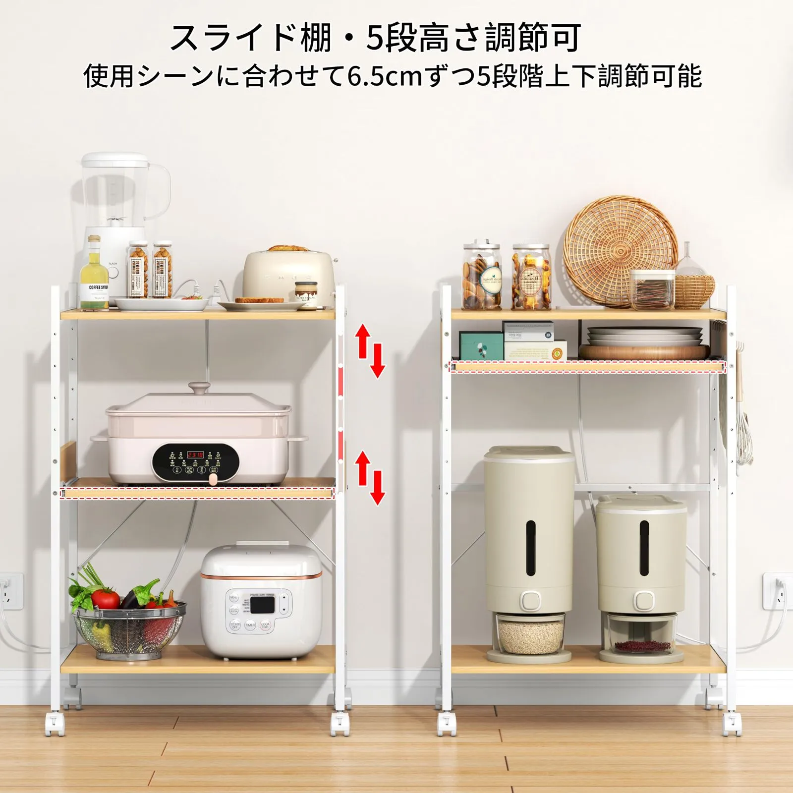 特価 コンセント・Sフック付き キャスター・アジャスター付き 移動式と固定式2機能 高さ5段調節可能 サイドパネル付き 総耐荷重112kg キッチン棚 スライド棚 幅60奥行き44高さ91.5cm 大型レンジ対応 キッチン収納 オーペンラック レンジ台 おしゃ
