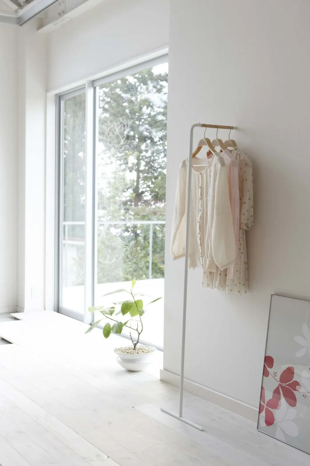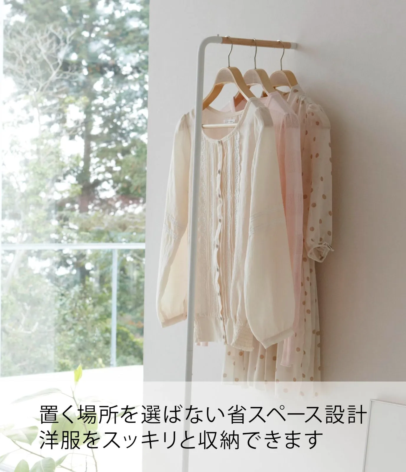 ●省スペース設計なので、圧迫感がなく置く場所を選ばない。壁に立てかけて衣類の荷重を支える