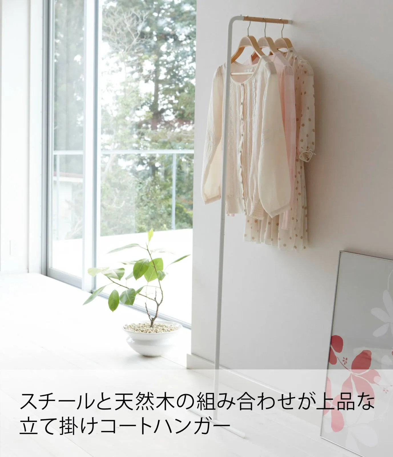 スチールと天然木の組み合わせが上品なコートハンガー。