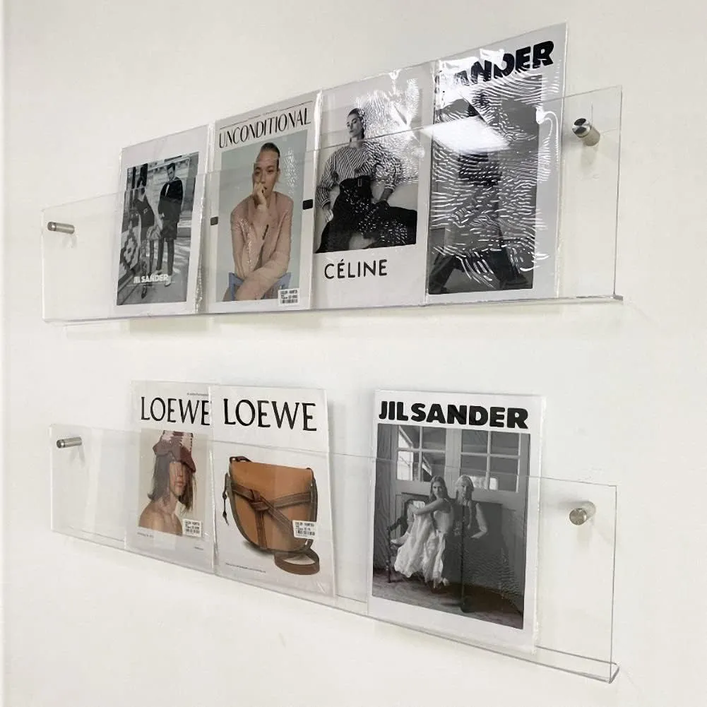マガジンラック 壁掛け 2個セット ウォールラック パンフレットスタンド レコードラック アクリル 透明 本棚 書類 雑誌ラック (透明 100*20*3.5cm)