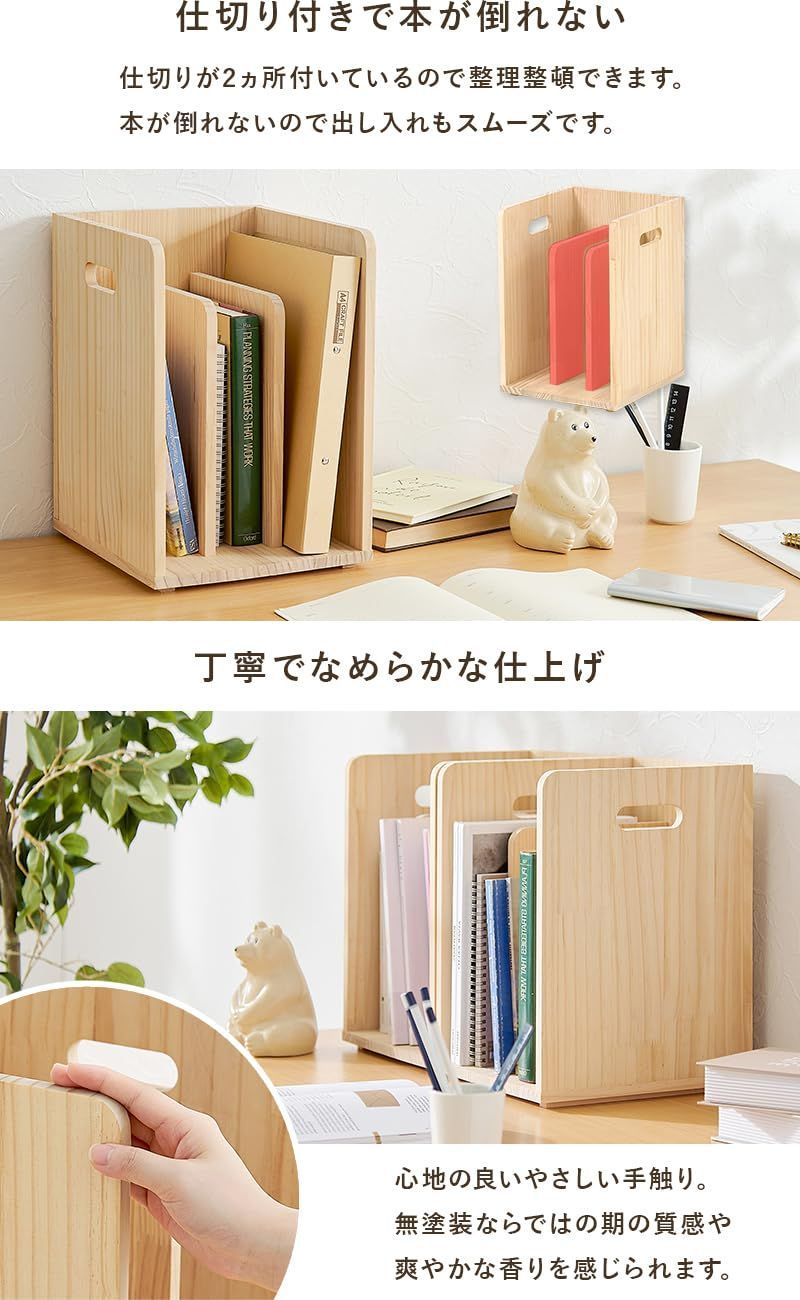【 2個セット 】 A4サイズ 本棚 本立て 倒れない 木製 無塗装 ナチュラル MM-6875NA 2台組