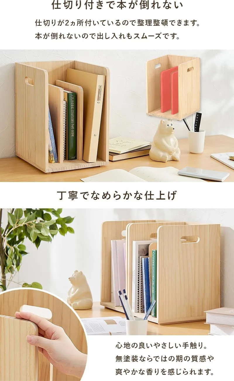 ブックラック 卓上 ファイルラック ブックエンド 【 2個セット 】 A4サイズ 本棚 萩原 本立て 倒れない 木製 無塗装 ナチュラル MM-6875NA 2台組