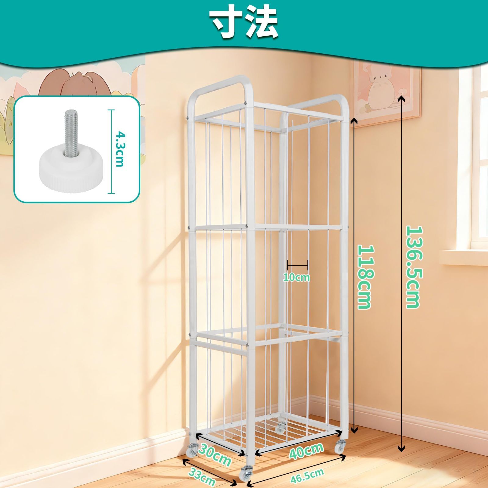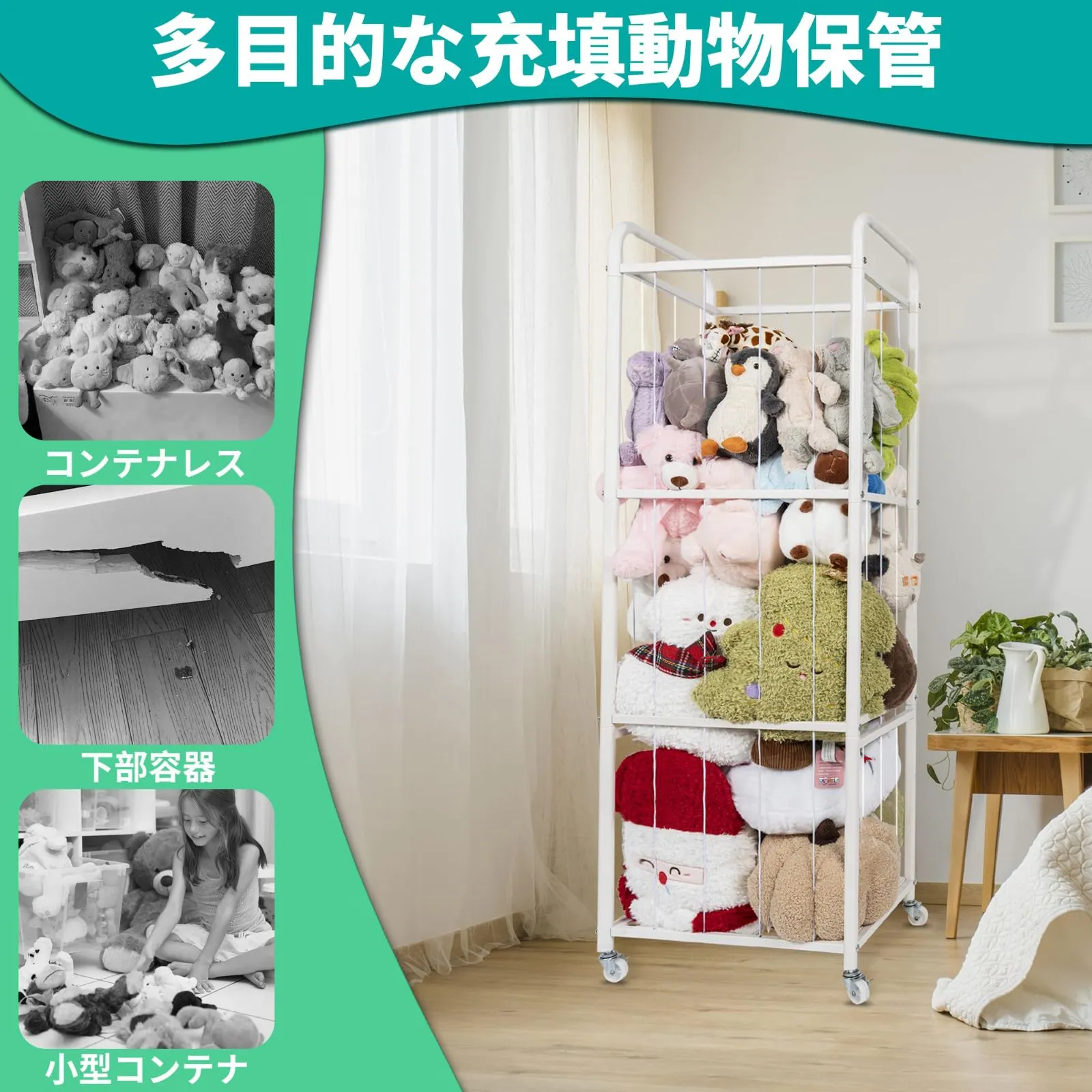 数量限定 ぬいぐるみ 収納 360°回転キャスター 転倒防止ストラップ付き 移動が簡単 大容量 陳列ケース 抱き枕 AKOZLIN ぬいぐるみ 子供部屋 リビングルーム 遊具室に最適 日本語説明書付き ホワイト 46×33×136cm
