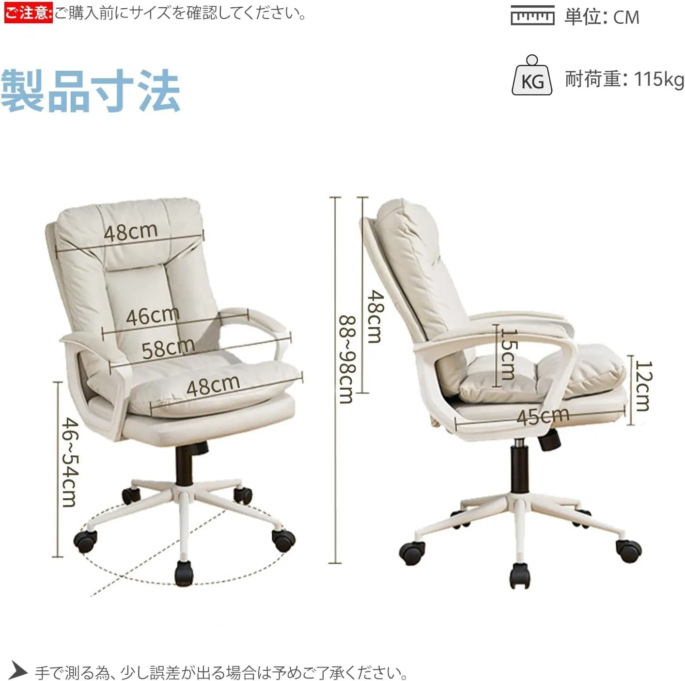 【ワンタッチ式昇降機能・360度回転】座面の下にあるレバーを引くと、昇降机能が働きます。簡単に操作可能です。調節範囲約10CM。最適な作業姿勢や視線まで調節でき、正しい姿勢を保ち続ける可能。オフィスチェアが360°スムーズに回転し、全方位を向く。長時間の作業をよりよく支えることができる。