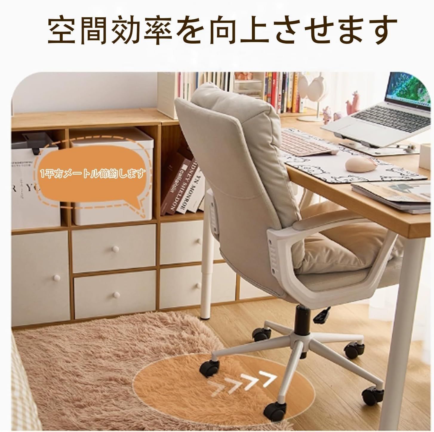 【実用性の多機能】 ◎10cm昇降機能 ◎スムーズに移動できる静音キャスター ◎360度回転座面