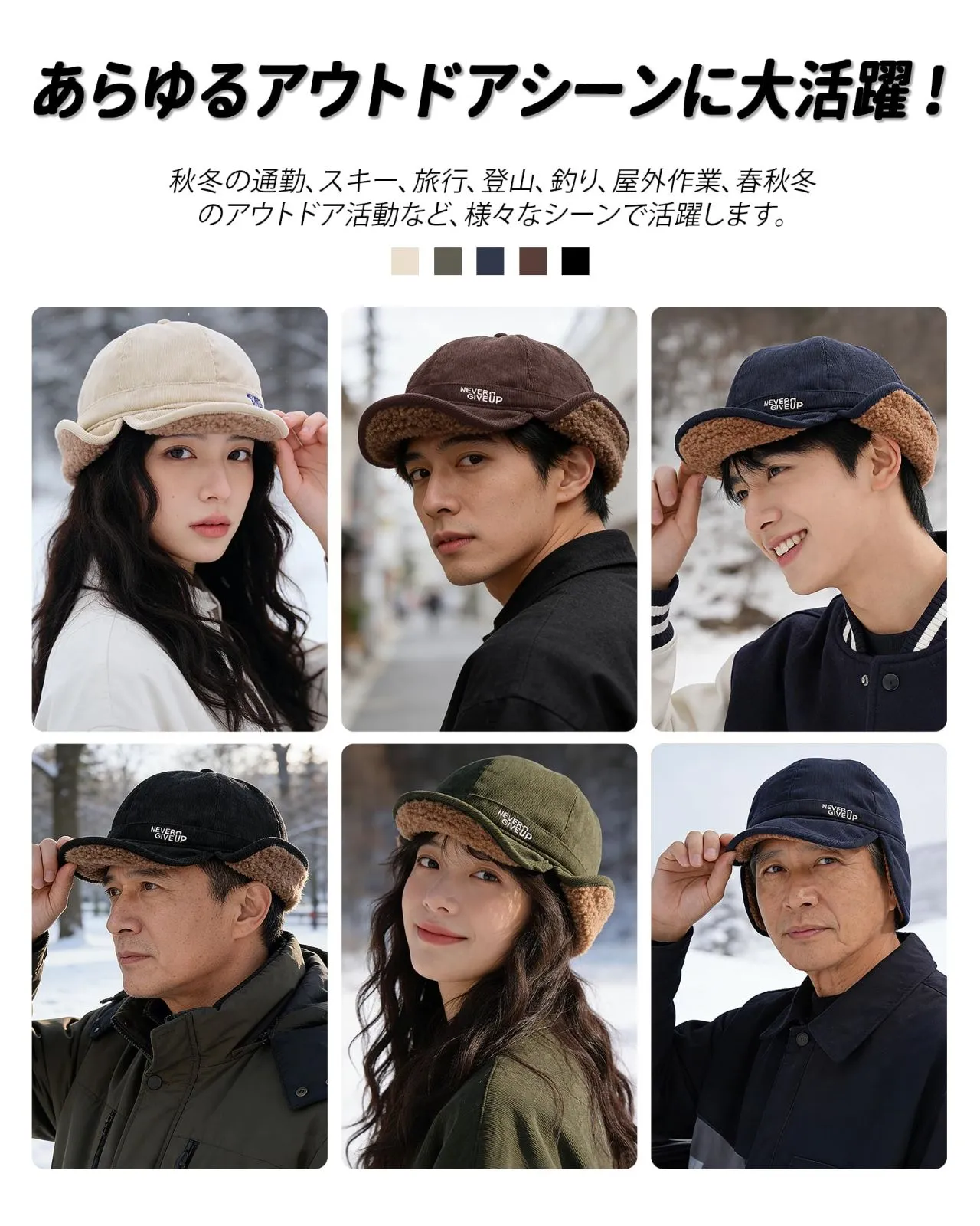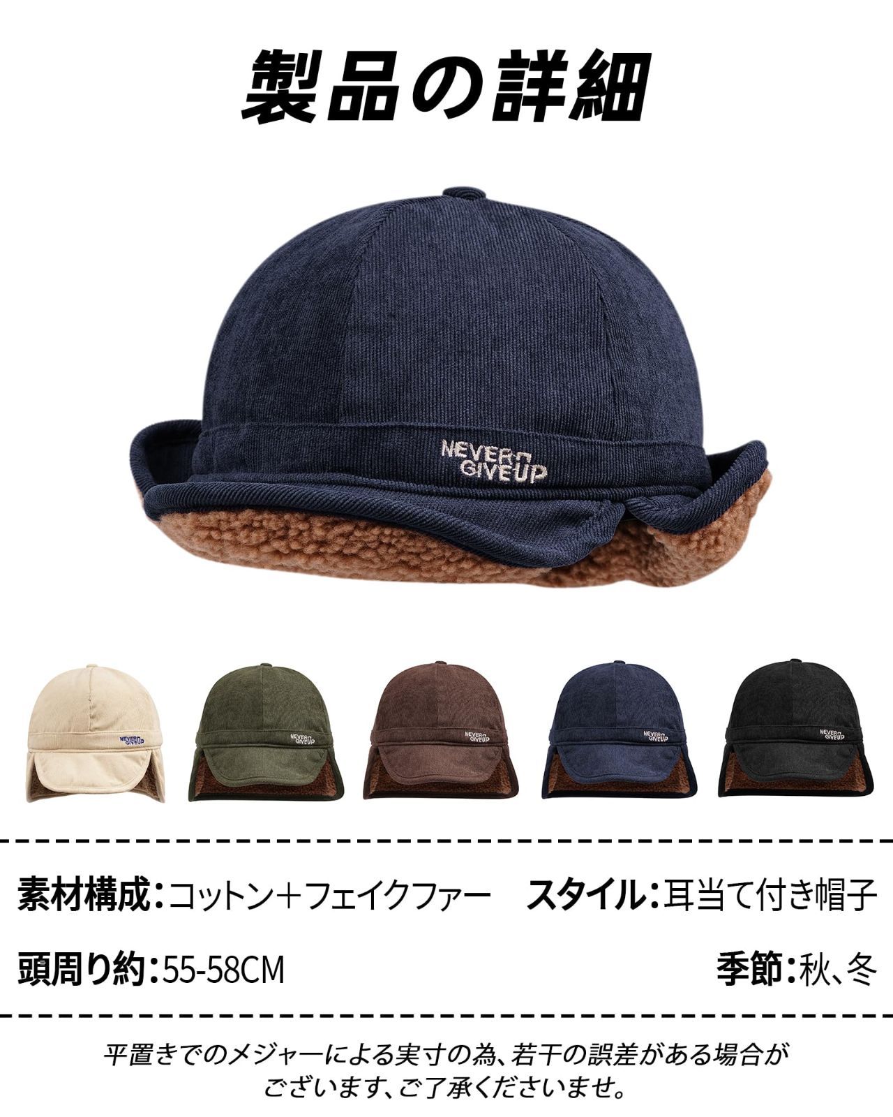優れた材質:当店の秋冬シーズンの帽子は保温性の高いコットンとフェイクファーを採用しています。外層は綿素材で、裏層はフェイクファーしたもので、二重の素材縫製は帽子の防寒効果を強化するだけでなく、帽子の耐久性も強化した。そのほか、綿とフェイクファーしたものは比較的軽く柔らかい材質で、外出時に持ち運びが便利で、同時に長時間着用することもできます。軽くて柔らかい材質で快適でストレスフリーです。