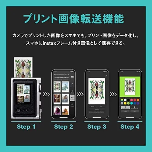 miniシリーズの新しいハイブリッドインスタントカメラ10種類のレンズ×10種類のフィルム効果で100通りの表現:10種類のレンズ効果と10種類のフィルム効果の掛け合わせにより100通りの写真表現を楽しめる。プリント画像をスマホに転送、簡単シェア:新たに「プリント画像データ保存機能」を搭載した専用アプリにより、フレーム付きのプリント画像をスマホに転送可能。micro