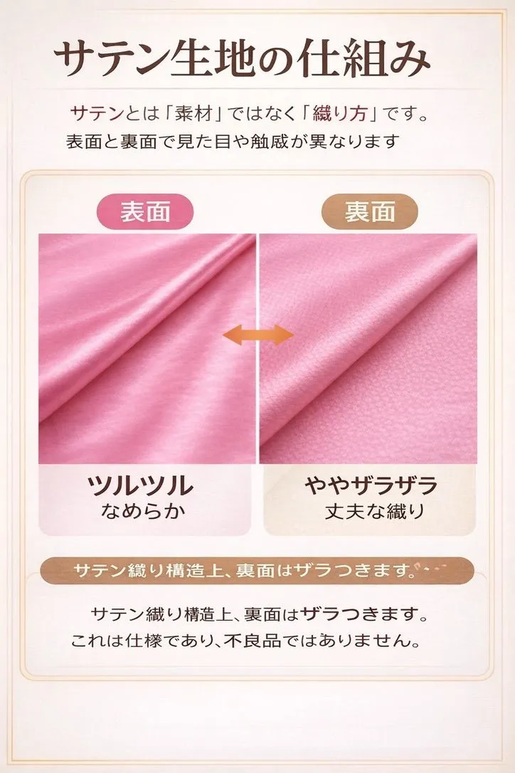 【サテン調素材】 シルクのようななめらかな触り心地のポリエステル100%素材を使用し、髪への引っかかりを軽減。