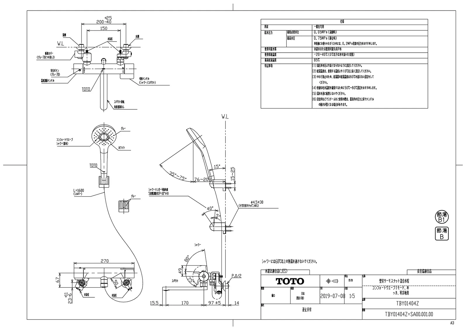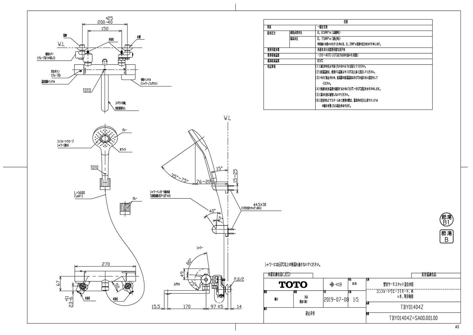 新品 TOTO 浴室用 壁付サーモスタット混合栓 コンフォートウェーブシャワー(めっき) 一般地向け TBY01404J