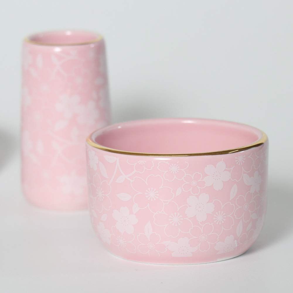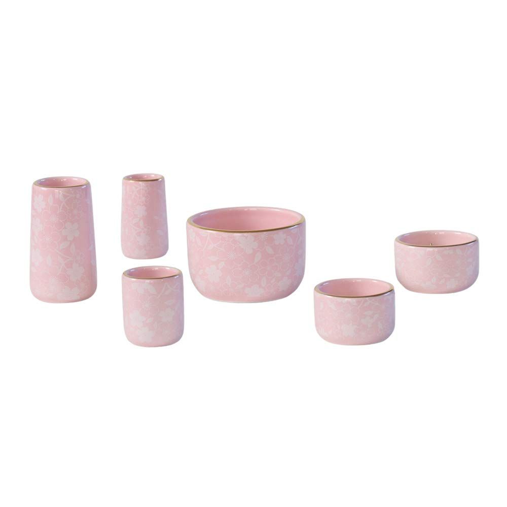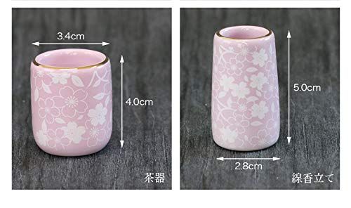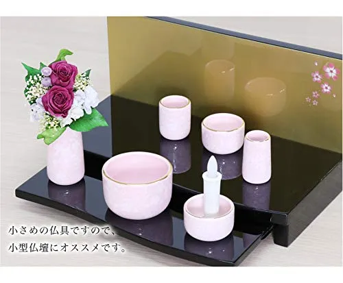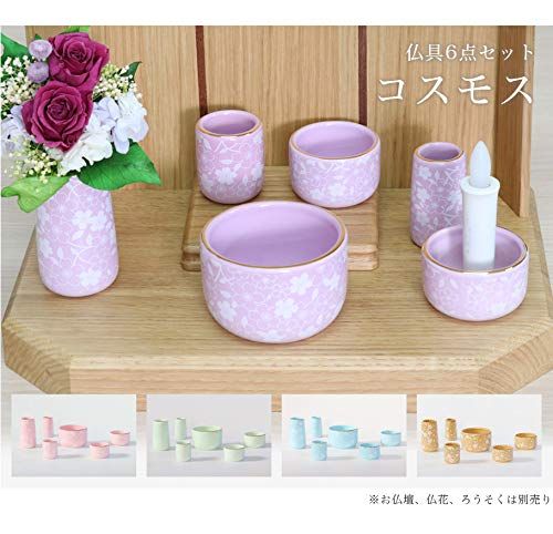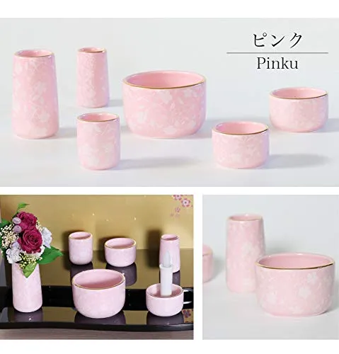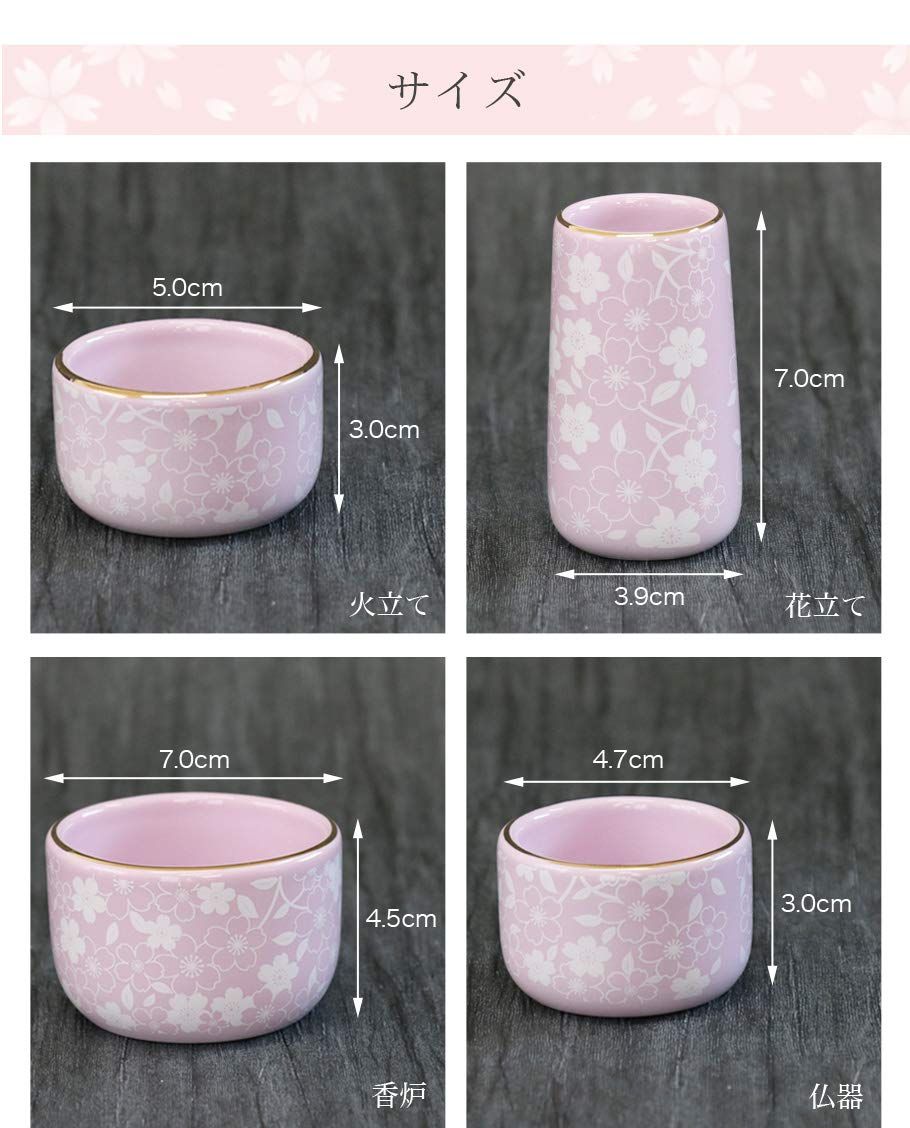 【6点】「コスモス」ピンク さくら柄 色: ピンク さくら柄の仏具6点セットです。 金の縁取りが入り高級感もあります。 陶器製でお手入れもしやすいです 。 小さめの仏具ですので、小型仏壇にオススメです。