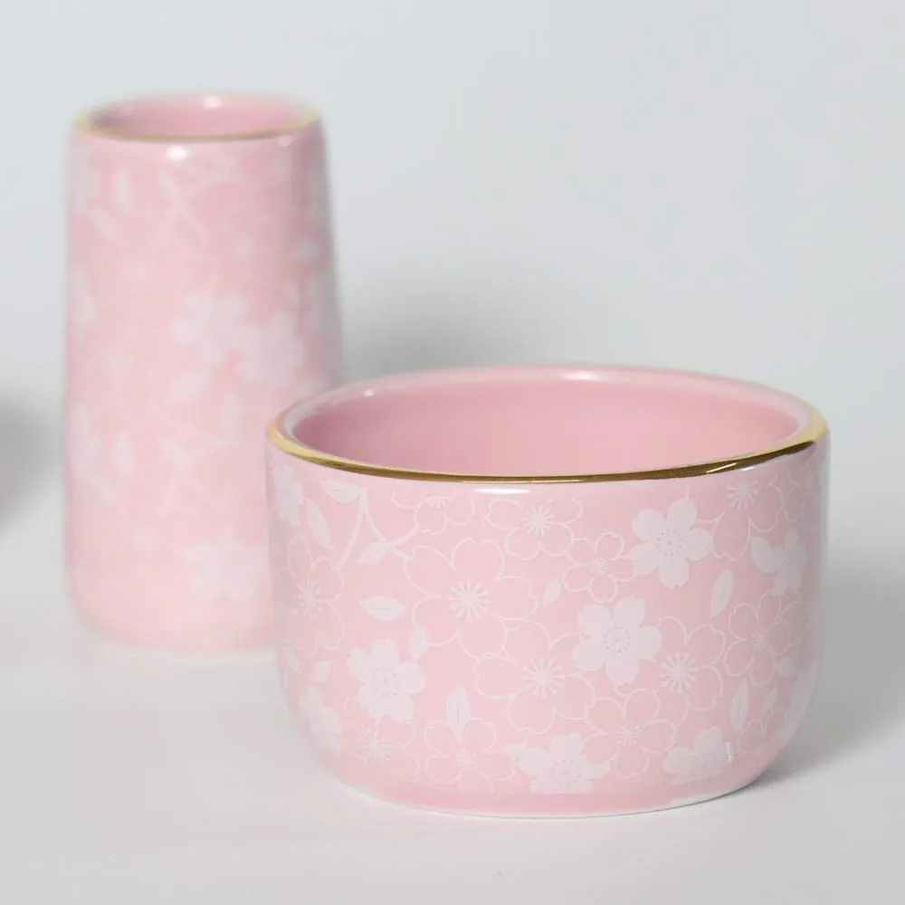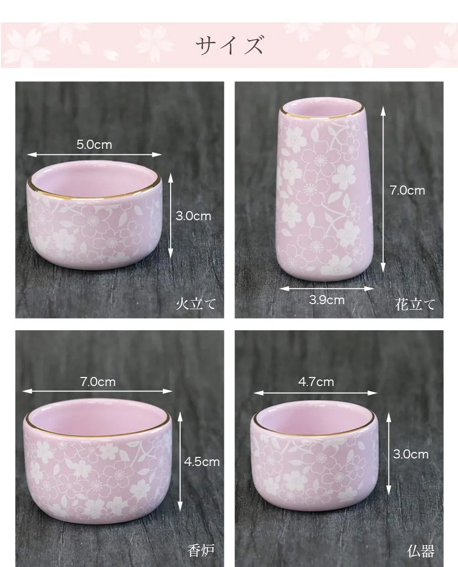 新品 陶器仏具セット【6点】「コスモス」ピンク さくら柄