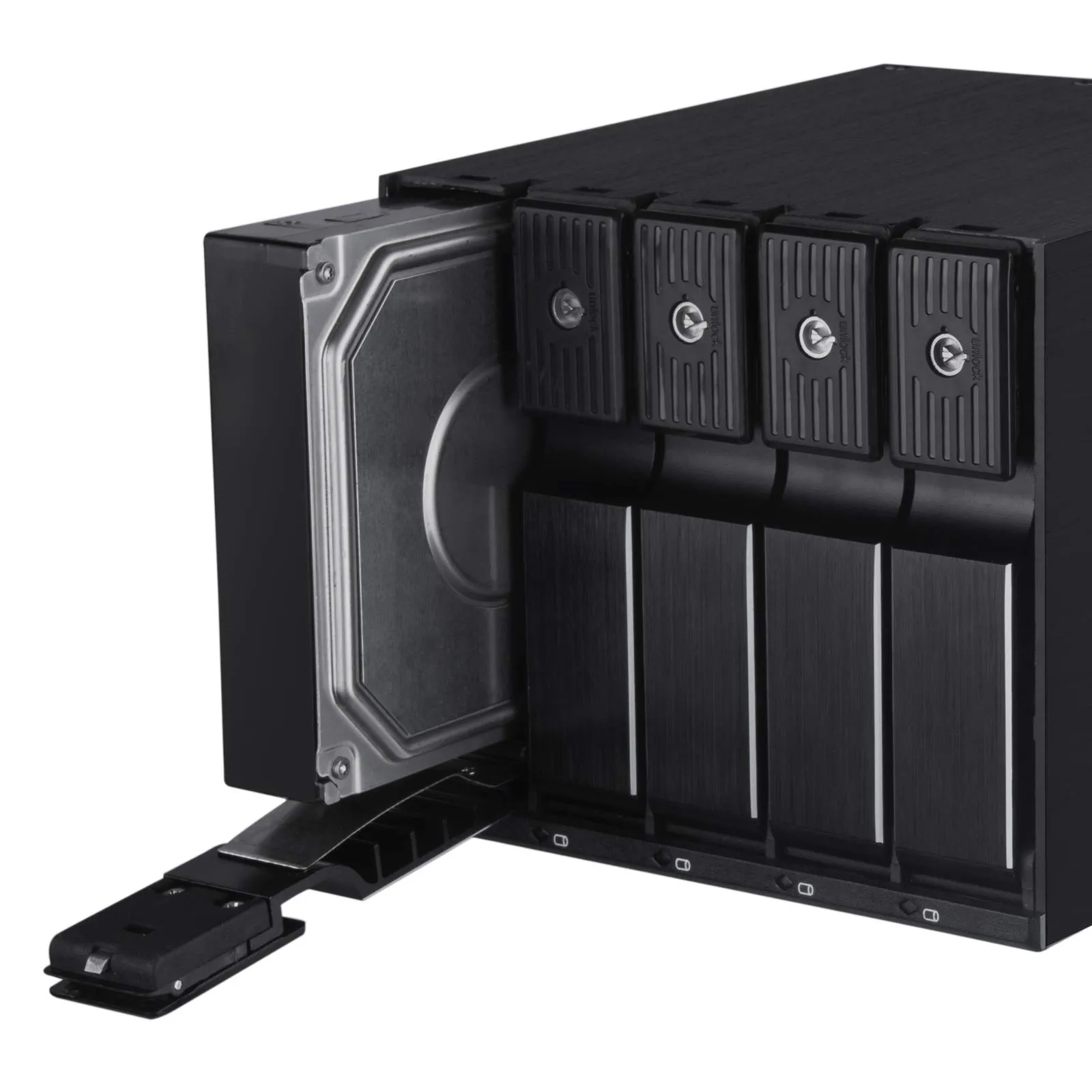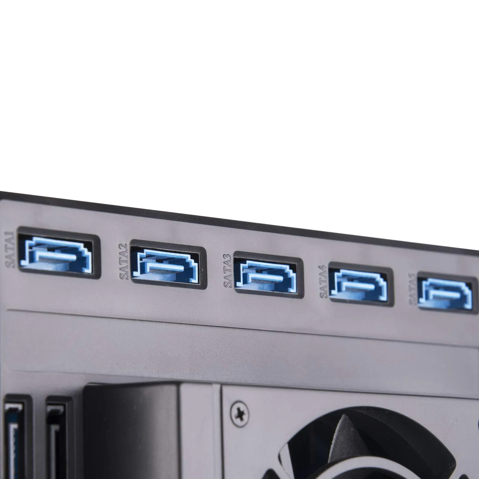 5つ5.25インチスロットの中に、5つ3.5インチSAS 12G / SATA 6 Gbit/s HDD対応