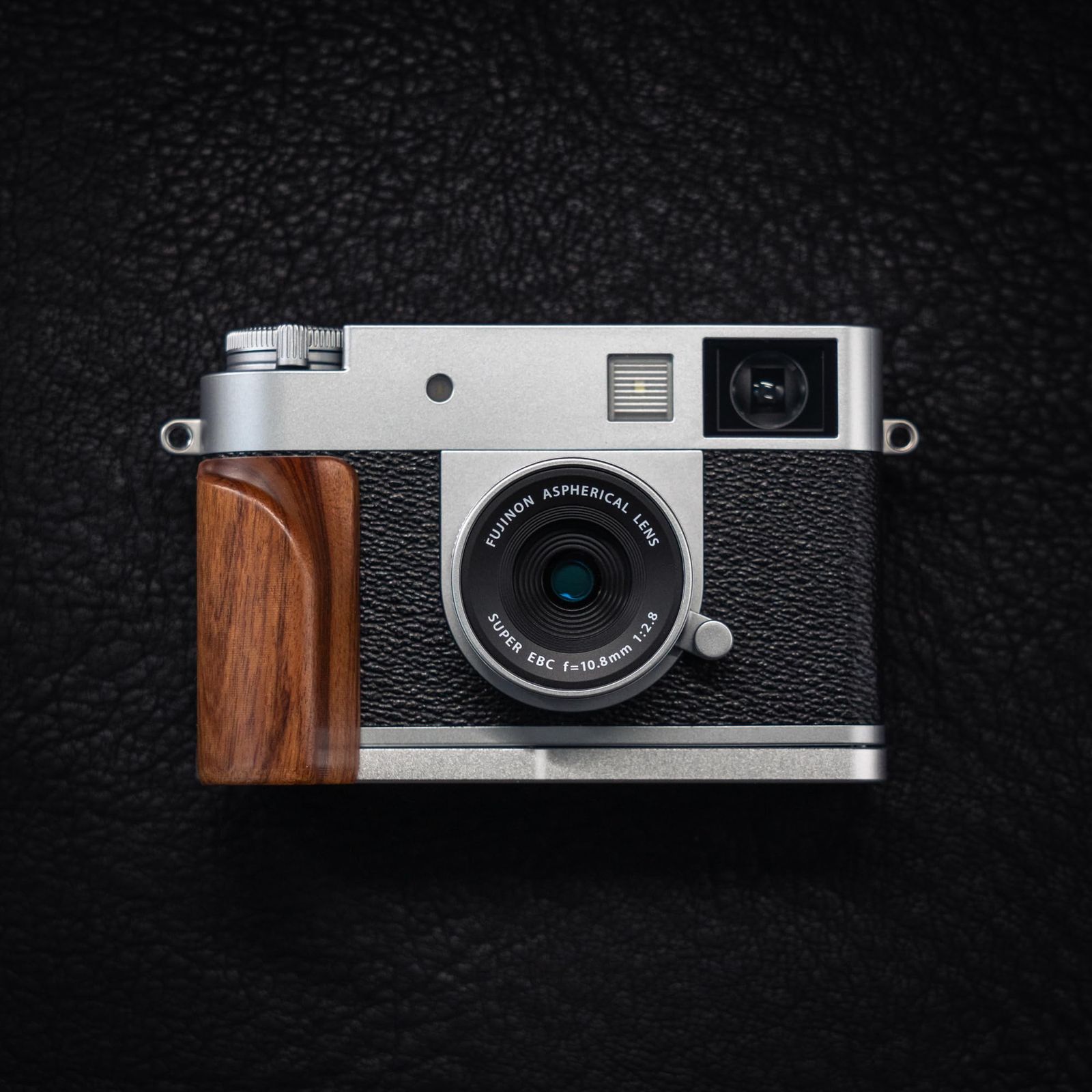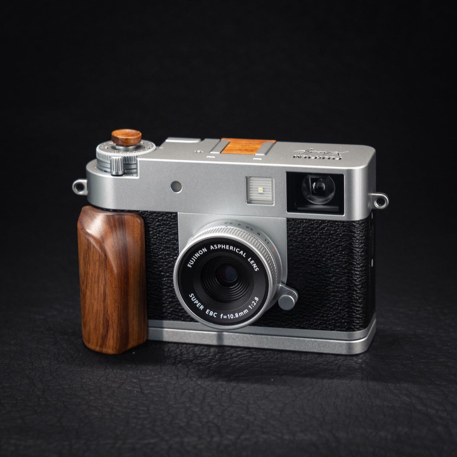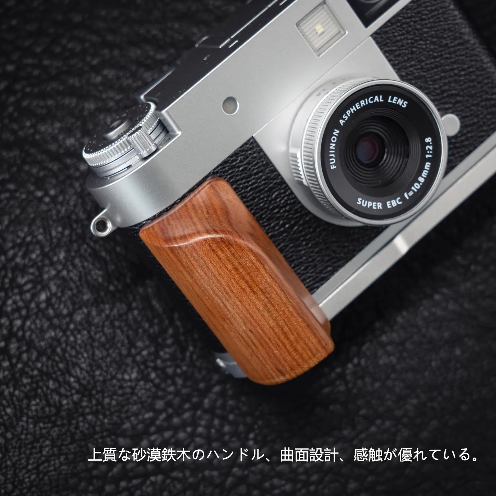 【天然木の美学】木製ハンドルはレトロカメラのデザインからインスパイア。自然素材へのこだわりが生む温もりある触感は、写真愛好家の芸術的個性を表現します。木目一つ一つが唯一無二のビジュアルを創出。 3.