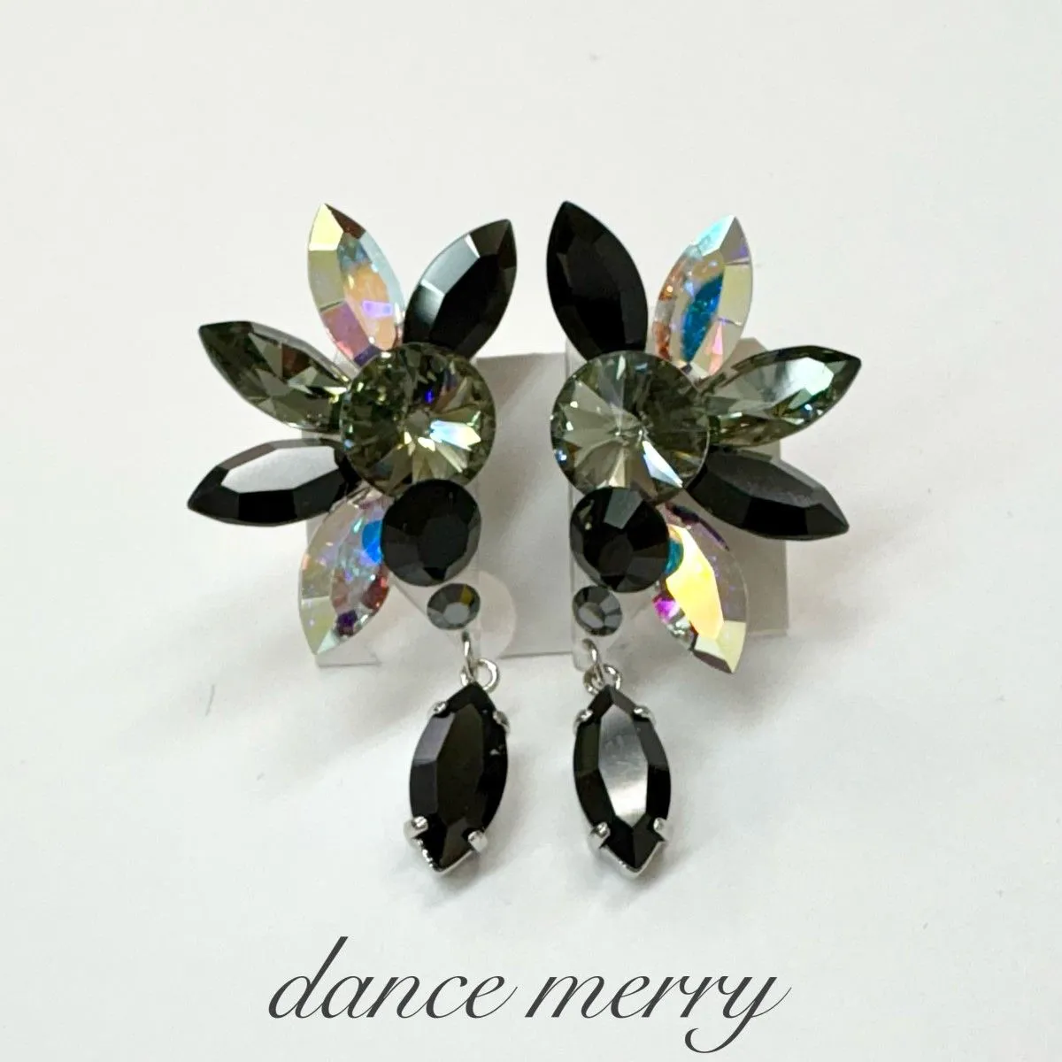 新品 豪華 イヤリング スワロ 黒 グレー ラテン タンゴ パーティ 726