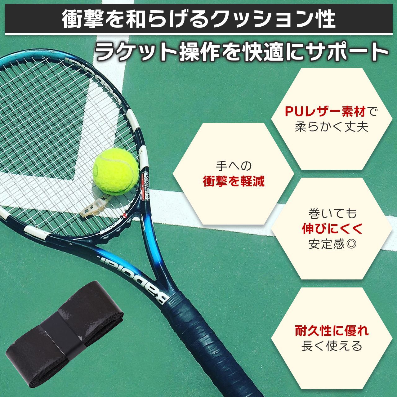 【商品特徴】 テニスやバドミントンなどのラケットやゴルフ、釣り竿など幅広く活躍するグリップテープです。 滑り止め機能抜群でスポーツ時に効果を発揮。 ラケットを持つ手への衝撃を和らげる効果もあります。 ラケットの汚れや傷防止にも◎ 吸水性抜群のドライタイプなので、汗をかいてもべたつきにくく、暑い季節や汗をかきやすい方にもおすすめです。