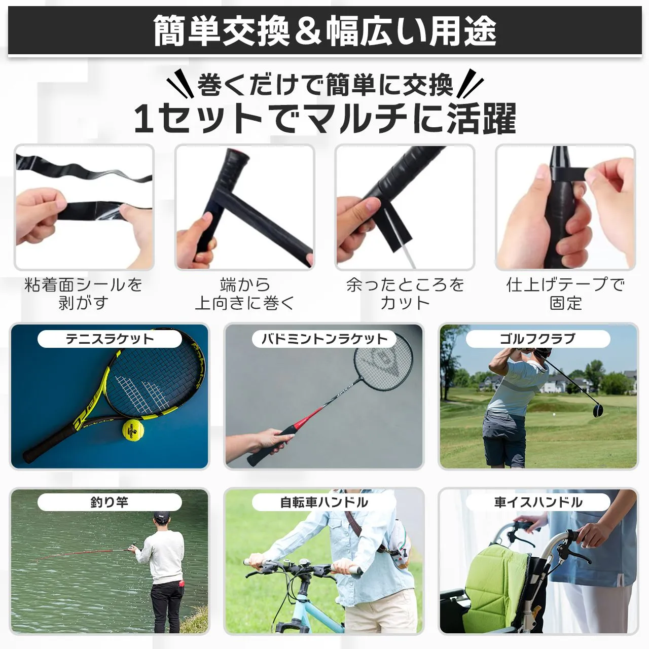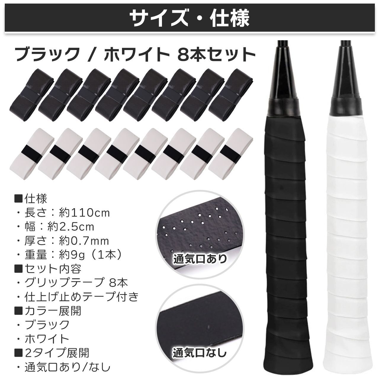 グリップテープ テニス バドミントン 8本 セット テニスラケット グリップ ウェット 滑り止め テニスグリップテープ 黒 白 ゴルフ 野球 バッド