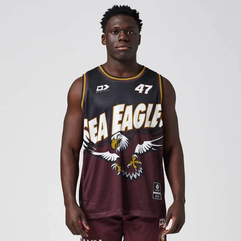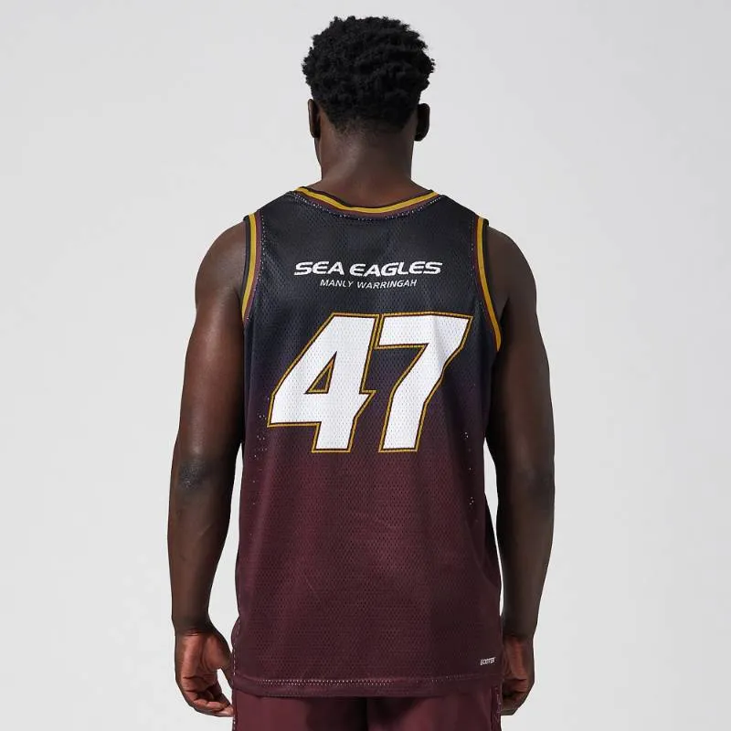 13人制ラグビーの世界最高峰リーグ「NRL」の名門、マンリー・ワーリンガー・シーイーグルスの2026年最新バスケットボール・シングレット。