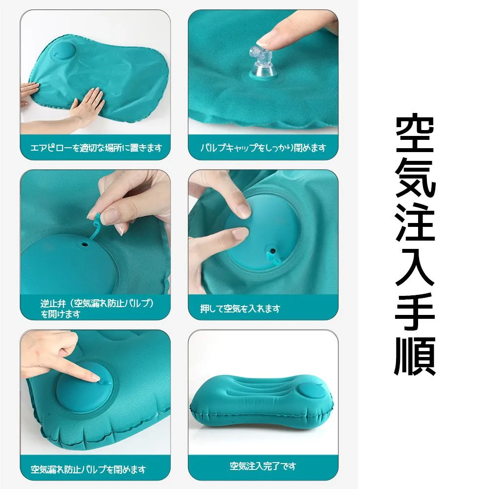 エアー枕 エアーピロー 携帯枕 ハンドポンプ式エアピロー 超軽量 持ち運び コンパクト収納 収納袋付き 手押し式エアークッション 車中泊 キャンプ アウトドア 屋外 旅行用 WBGHS-01-P