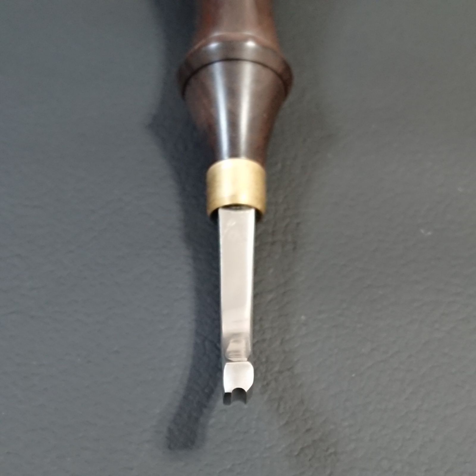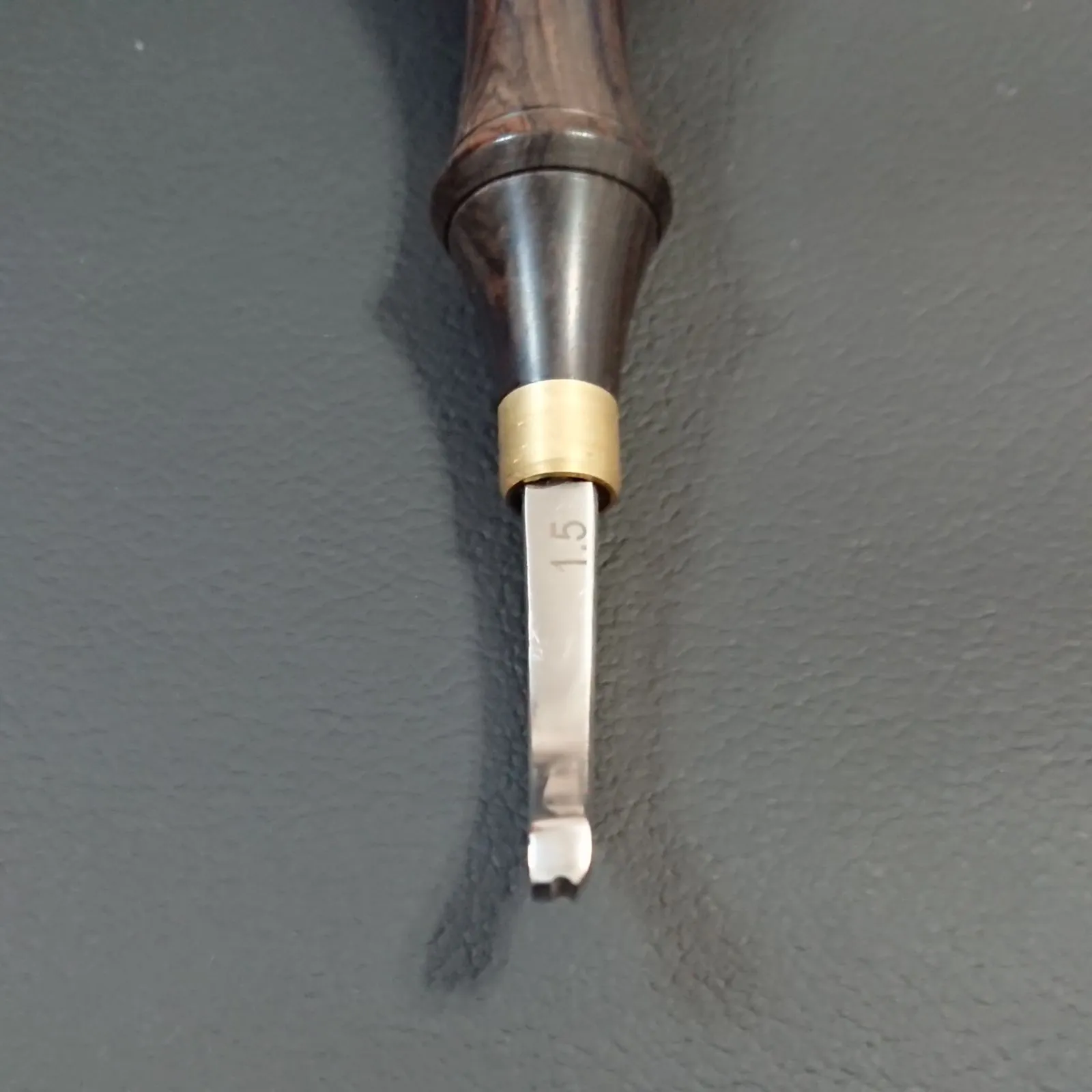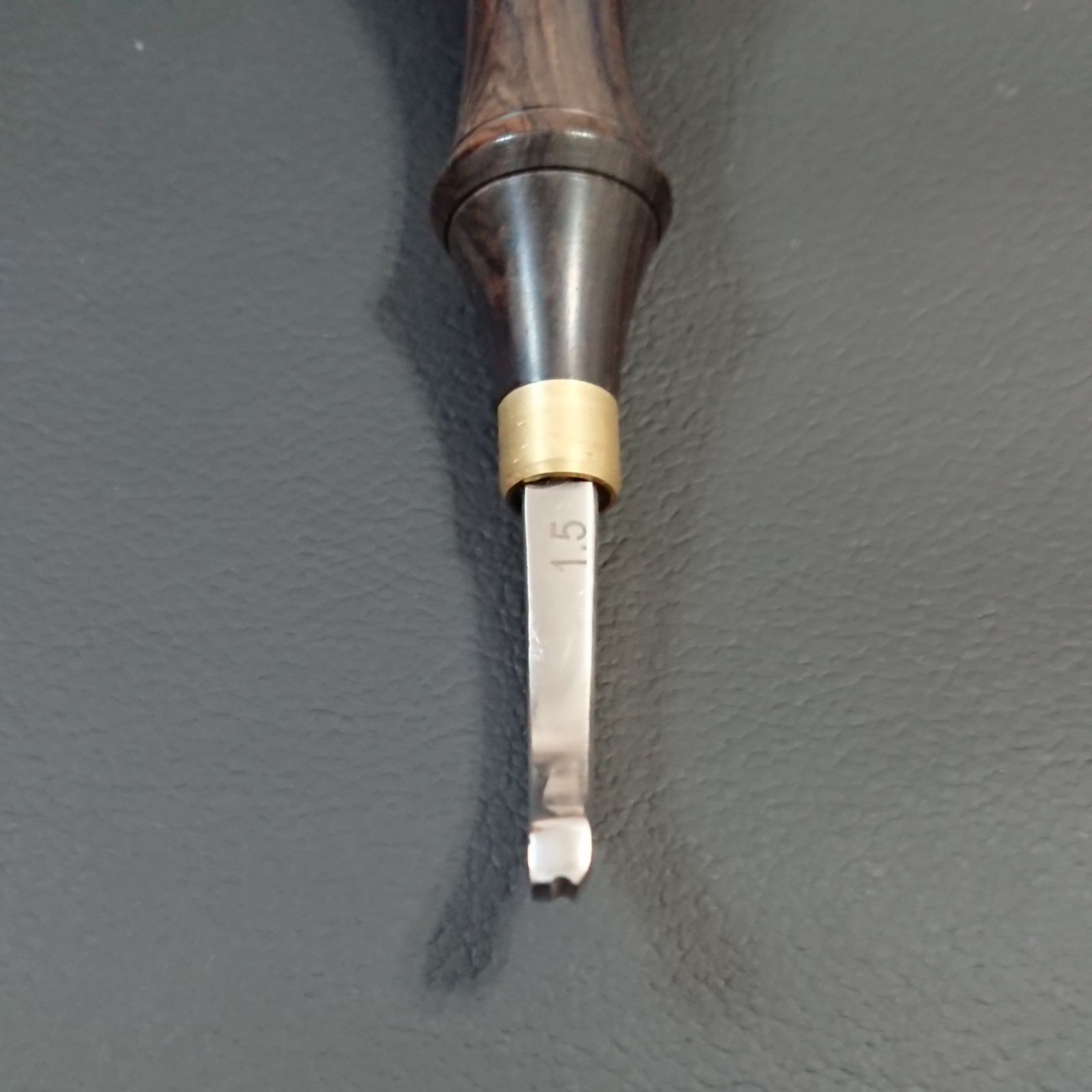 【横山】の玉捻です。 アルコールランプ等で熱して使うことでコバを焼き固め、飾り捻を入れることができます。ぷっくりとした高級感のある仕上げにすることが可能です。 焼き固めることにより耐久性も向上するので財布のカードポケットなどに特におすすめです。 熱を入れずにそのまま使うと等間隔で線を引くこともできるので、ディバイダーの変わりとして目打ちのガイドラインに使うこともできます。 約1.5㎜ 約2㎜ 作品に併せて使い分けできる便利な2本セットです。 持ち手部分は高級家具等にも使われるエボニーで、手馴染みがよく非常に硬いので永くお使いいただけるかと思います。 この他にもレザークラフト用品を出品しております。併せてご購入いただけるようでしたらお値段のご相談もさせていただけますのでよろしければご覧ください。 レザーツールはこちら↓ #YLWorksLeatherTool #ハンドメイド #Leathercraft #革 #道具