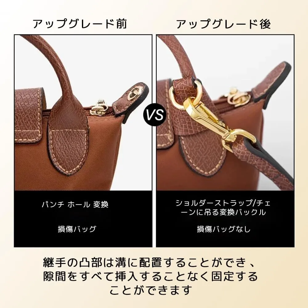 【ノーホール改造金具付き】特別設計の改造用金具(バックル2個付き)で、工具不要・穴あけ不要。バッグを傷つけずに簡単にショルダー ベルトを取り付けでき、手持ちバッグをショルダーバッグに変身させます。 4.