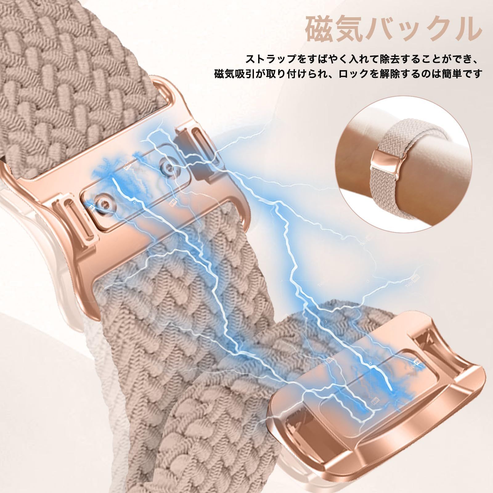 スマートウォッチバンド 時計バンド 伸縮性 レディース メンズ 通気性 スポーツバンド 磁気吸着式バックル 編み込み 柔軟性 ナイロン ベルト クイックリリース 弾力性 22mm 腕時計ベルト 20mm 20mm 腕時計バンド -(ミルクティー色 交換ベルト