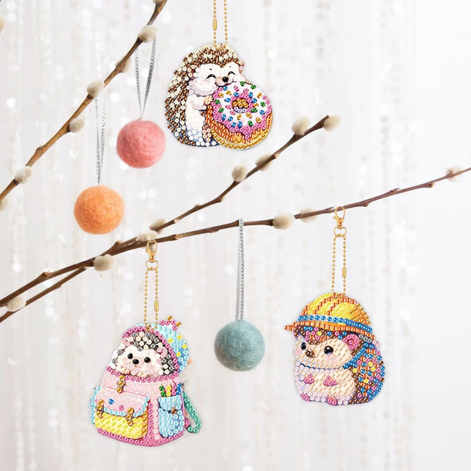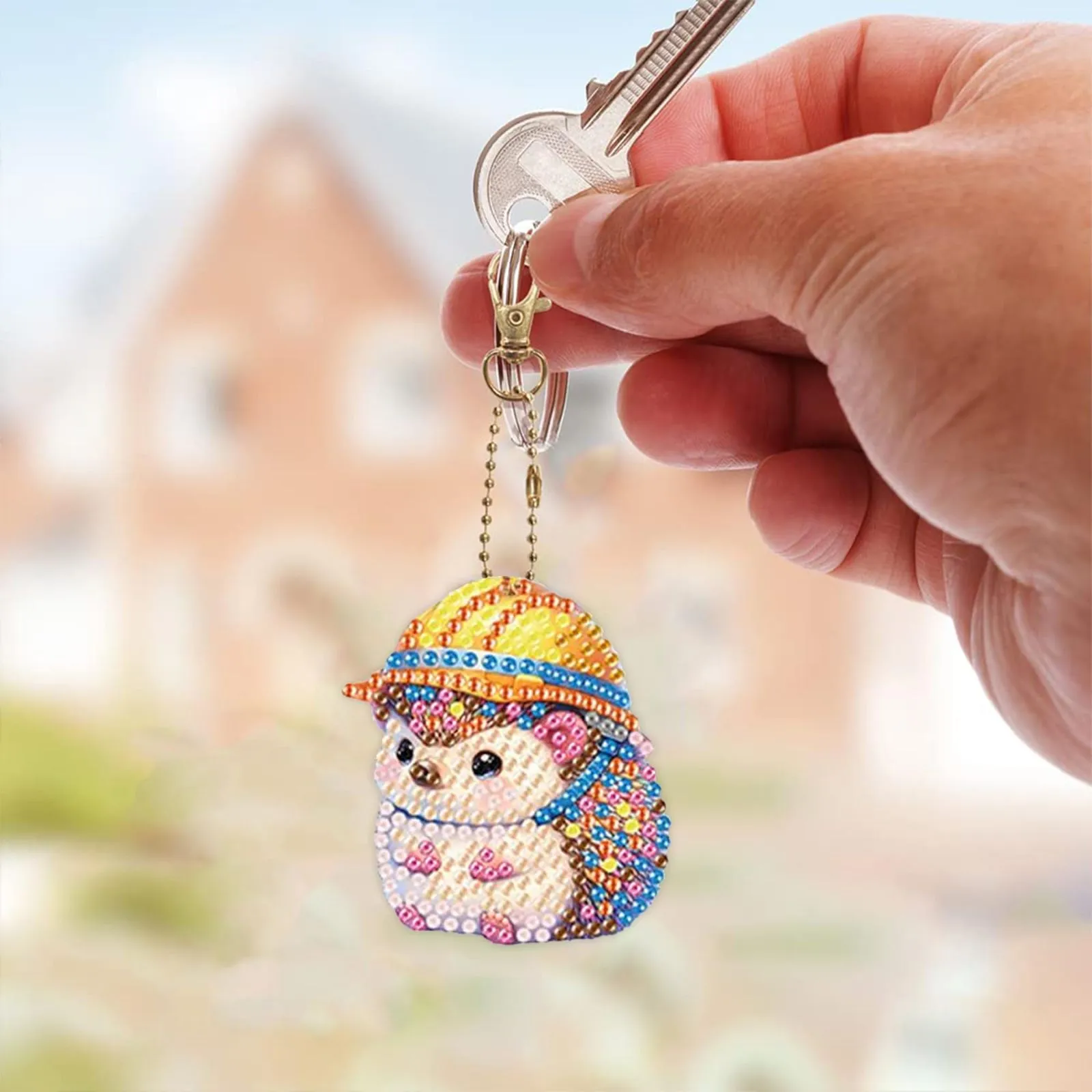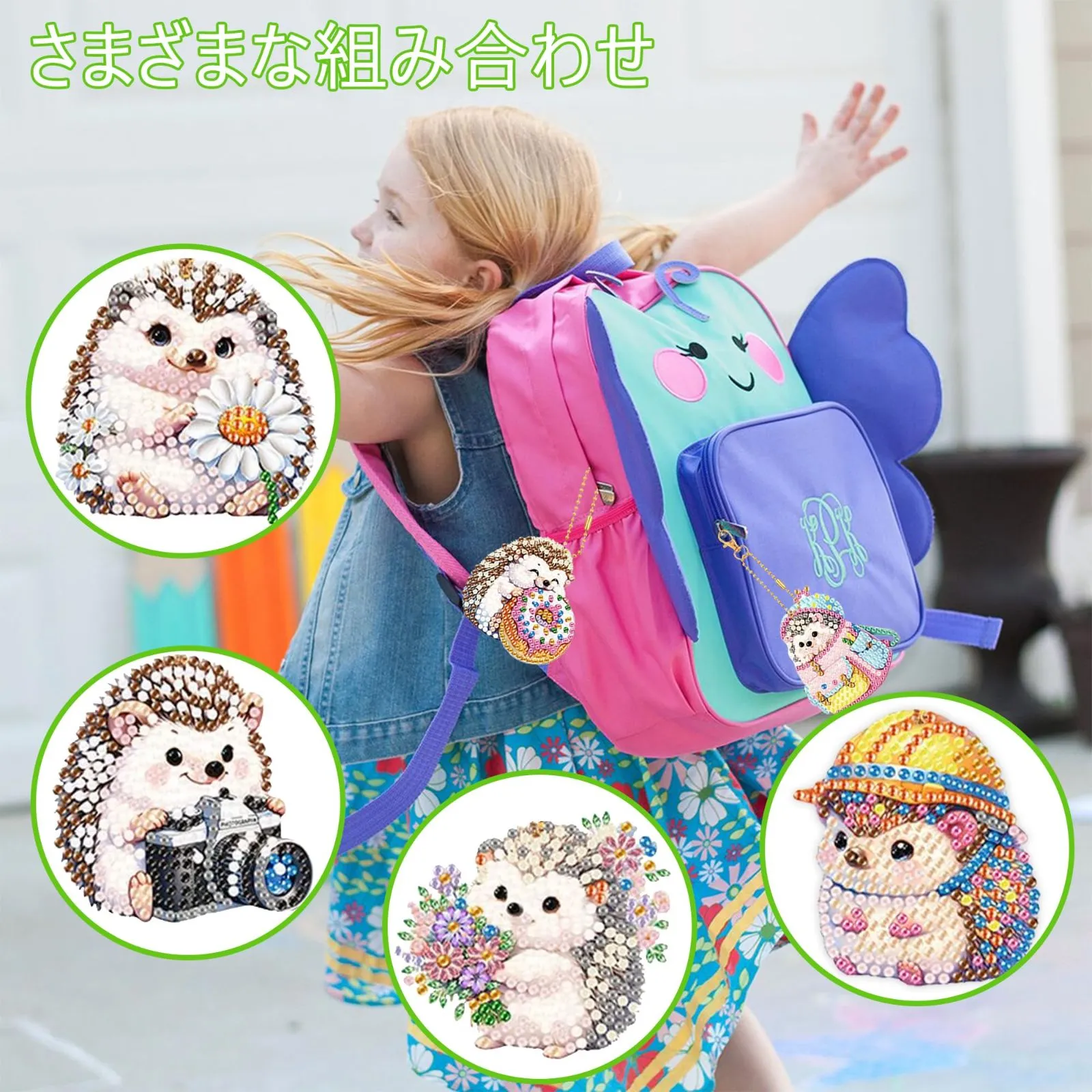 初心者OK!簡単DIYで完成できる:かわいい動物デザイン・短時間完成:ハリネズミの6種類の画像,のミニサイズキーホルダーで、1つ30分以内で完成!専用ダイヤトレイや接着剤付きで、初心者もストレスなく楽しめます