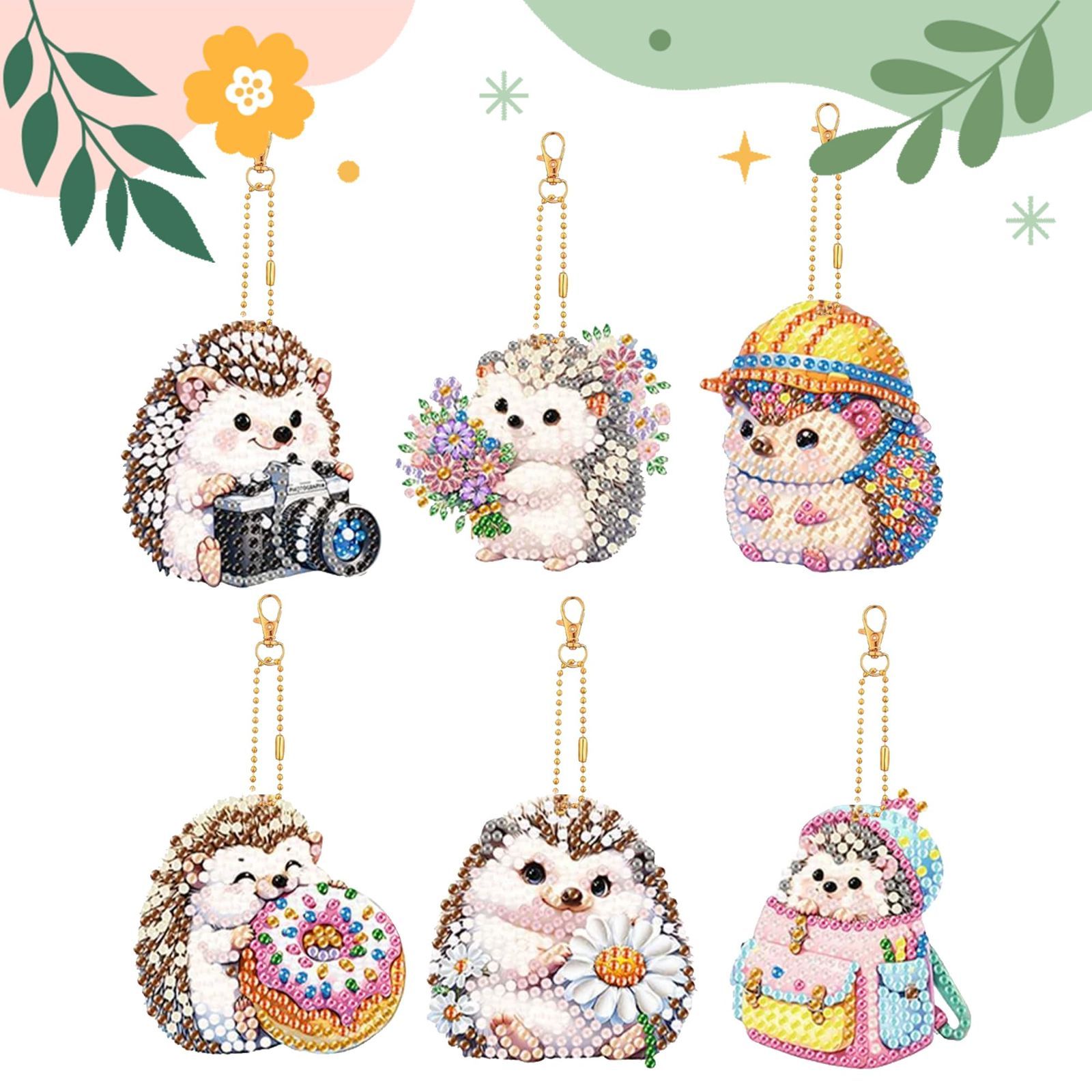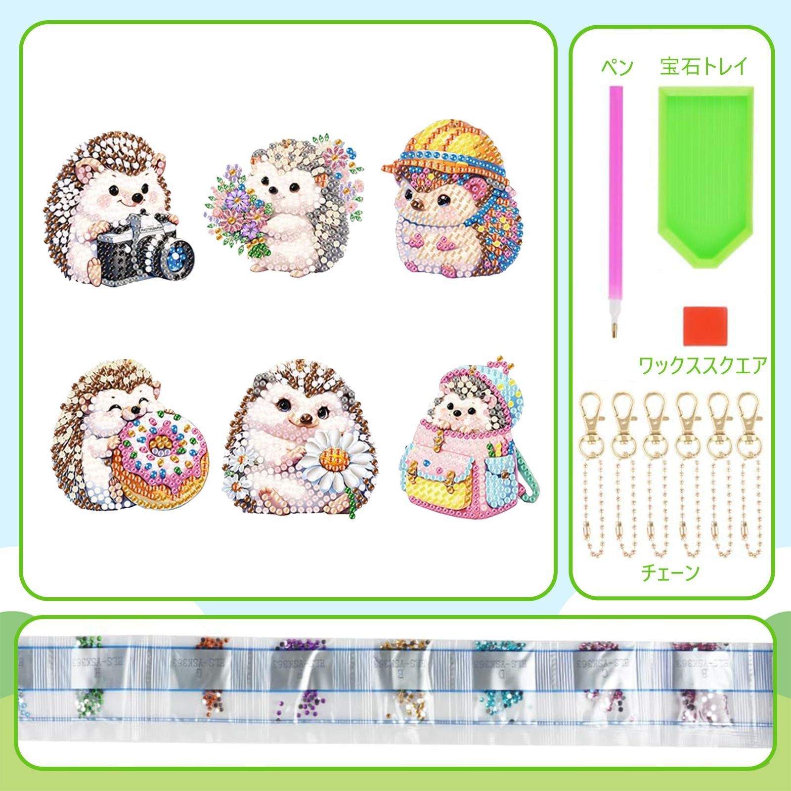 LOMSIOY ダイヤモンドアート キーホルダーキット 6個ダイヤモンドアート ハリネズミ・両面DIY|初心者向け手作り かわいい ハリネズミ ビーズアート|小さいサイズで簡単完成・付属道具完備(トレイ・粘着泥・ダイヤモンド・チェーン)|キーホルダーとして使える・装飾用プレゼントに
