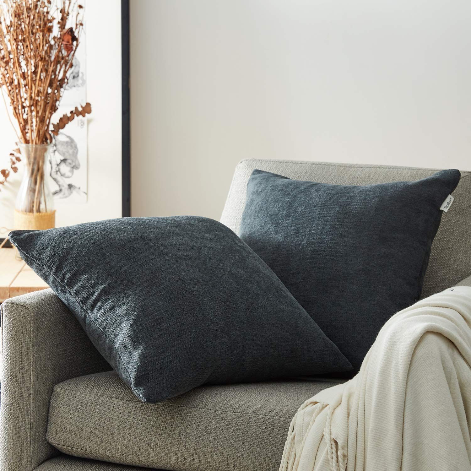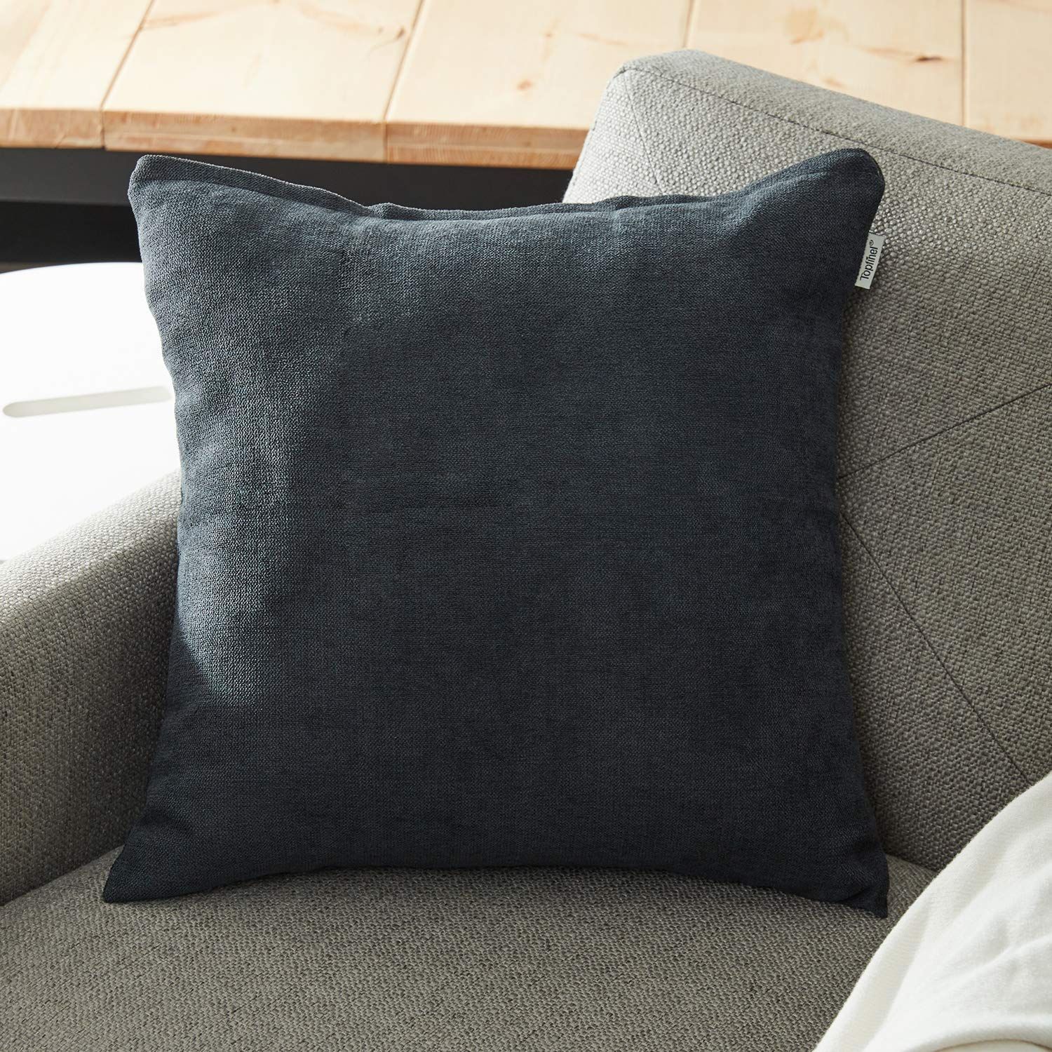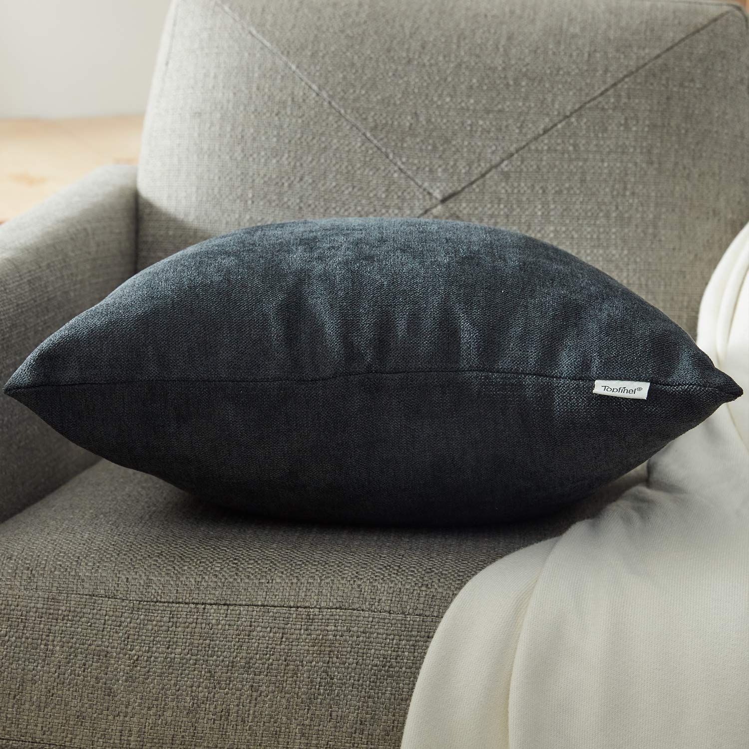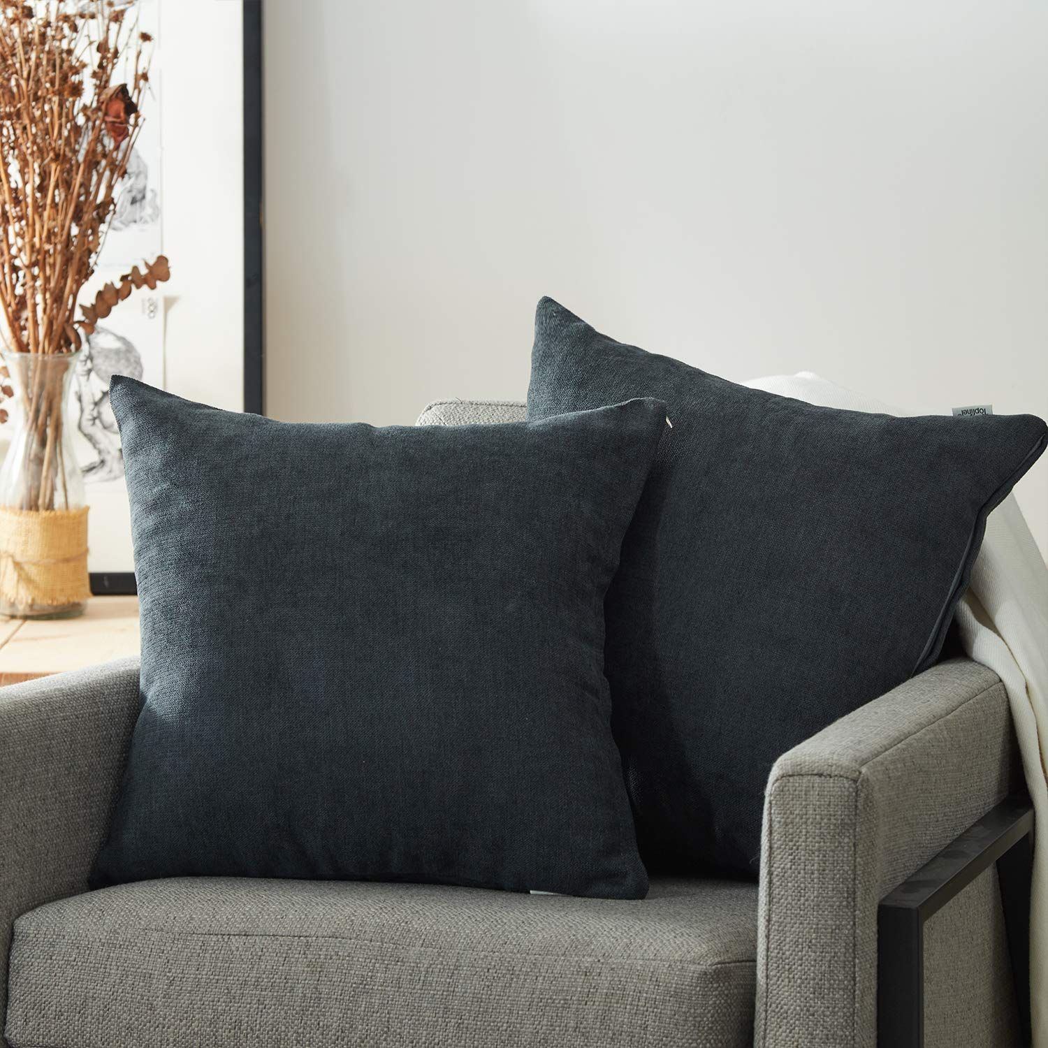 Topfinel クッションカバー リネンっぽい 45×45cm 北欧 おしゃれ 綿麻 無地 ソファ背当て 装飾枕カバー 座布団カバー 濃いグレー 2枚セット(全10色)