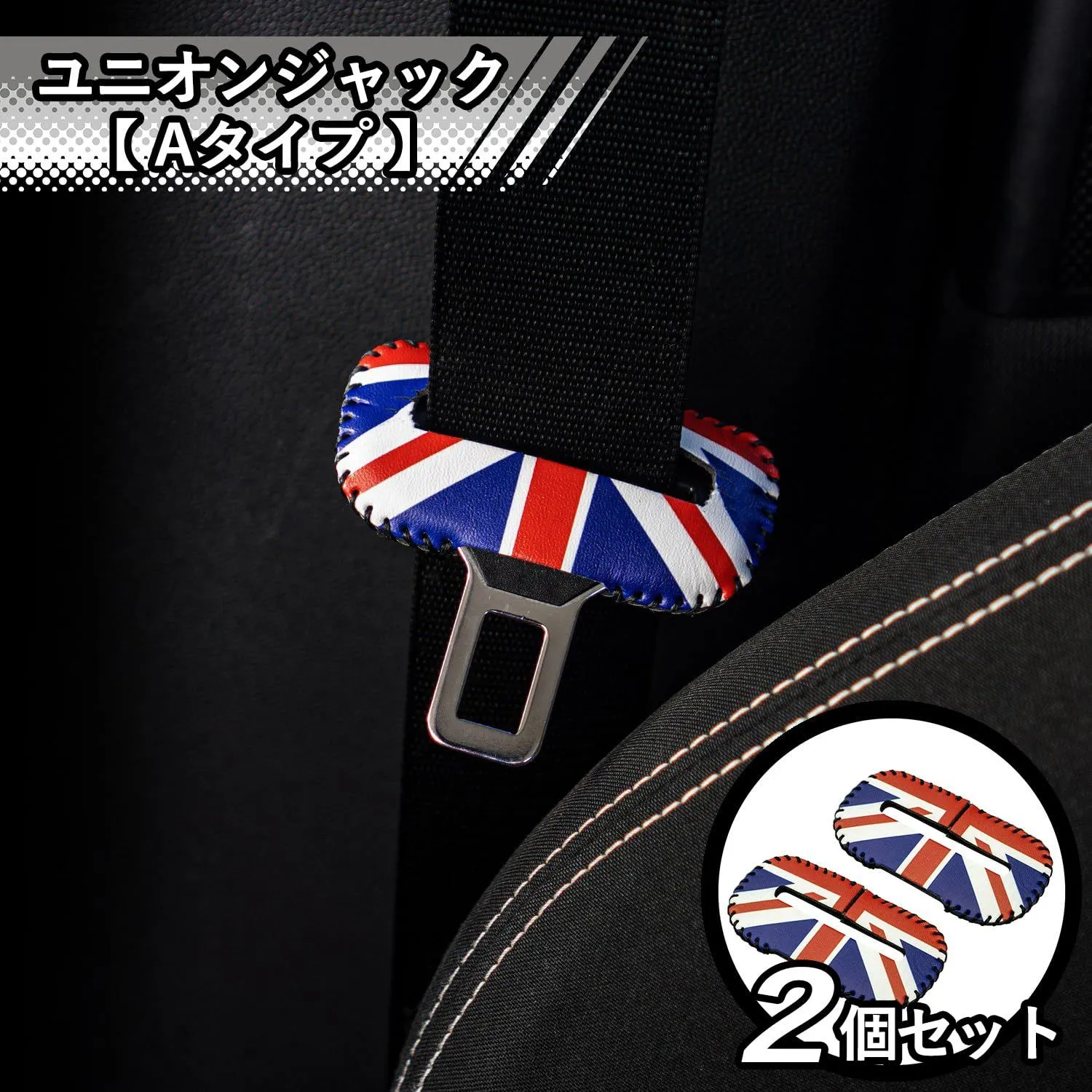 スカイベル(SKYBELL) シートベルト バックル カバー ミニクーパー f54 f55 f56 f57 f60 BMW MINI 対応 2個 アクセサリー 便利 グッズ 合成皮革 (ユニオンジャック【A】)