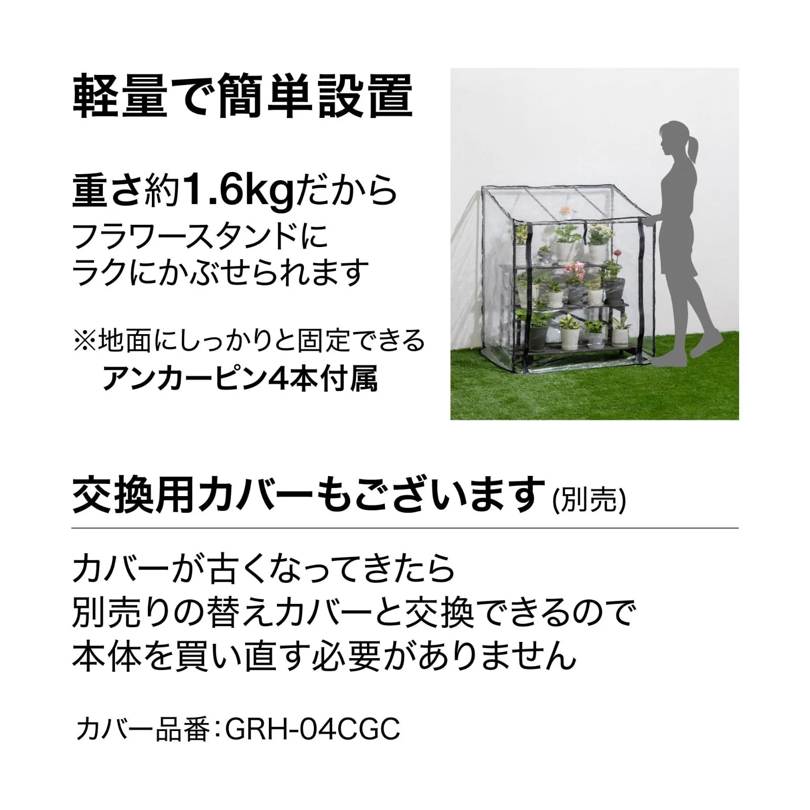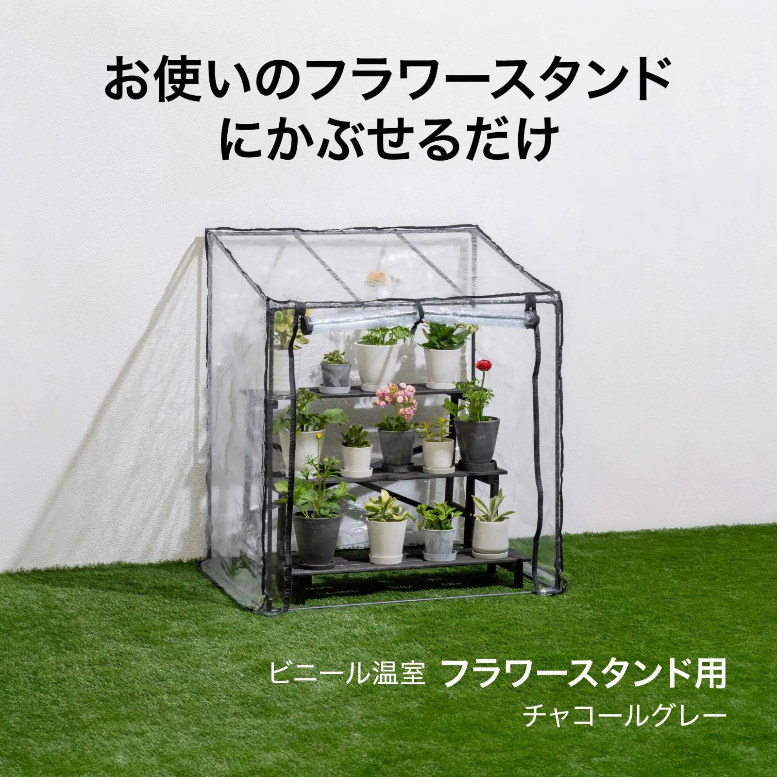チャコールグレー 96x70x111cm フラワースタンド用 1.6kg 園芸 防寒カバー ビニール温室 植物 育苗 ビニールハウス 組立簡単 スチール 塩化ビニル樹脂 タカショー ポリプロピレン GRH-04CG