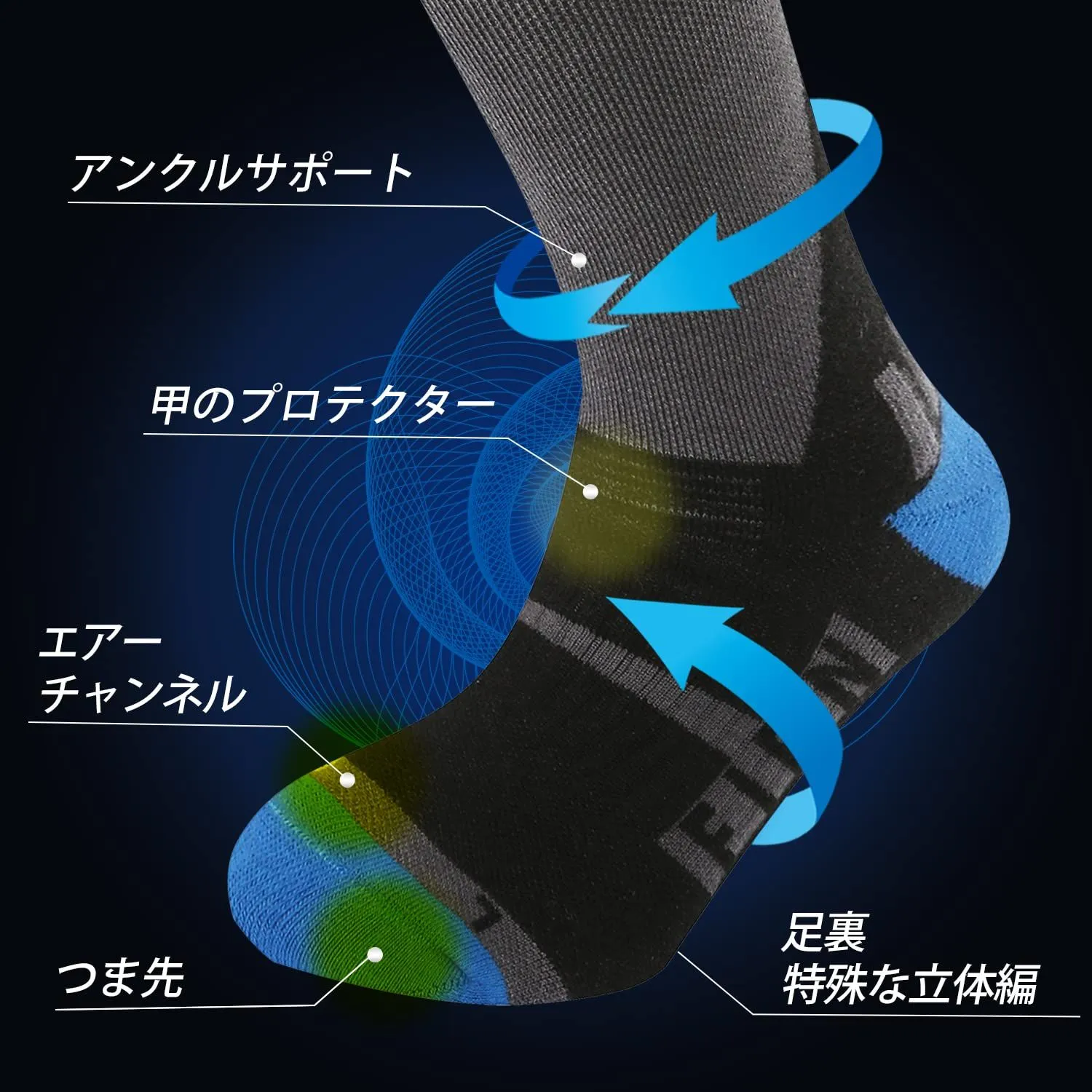 【消臭・吸水速乾】吸放湿性と消臭機能に優れたメリノウールは汗によるムレや臭いを軽減し快適な履き心地を提供。機能性と快適性を両立したソックスです。