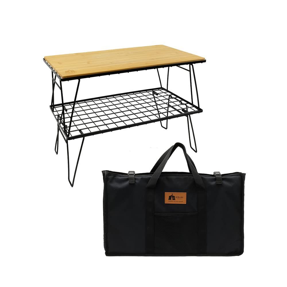 [HIBARI] フィールドラック キャンピングラック 2個セット 天板付き 収納ケース付き ブラック キャンプ収納 コンパクト アウトドアワゴン アウトドアテーブル 折りたたみ テーブル ローチェアアウトドア キャンプテーブ (ラック2枚/天板1枚/収納ケース)
