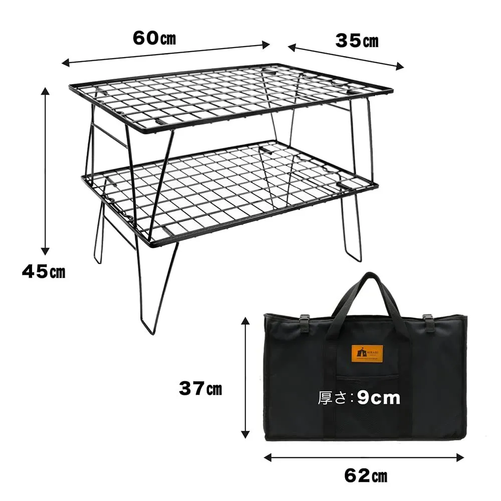 アウトドアテーブル アウトドアワゴン コンパクト 折りたたみ キャンプ収納 テーブル ブラック 収納ケース付き ローチェアアウトドア 天板付き 2個セット キャンプテーブ キャンピングラック フィールドラック (ラック2枚/天板1枚/収納ケース) [HIBAR