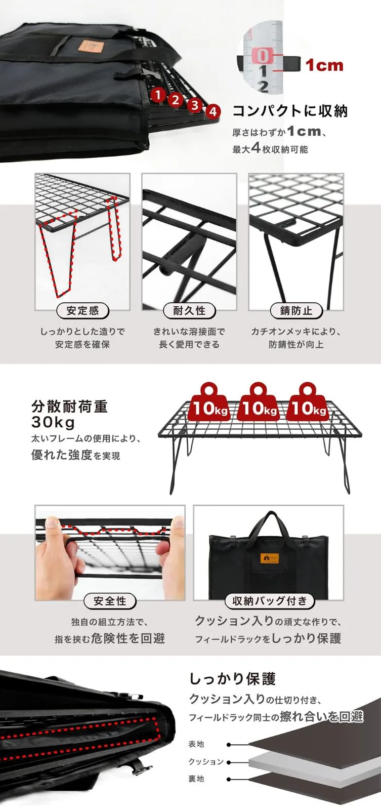 【収納袋付き】 傷や緩みに強い900Dポリエステル製、小物入れや生地の厚めの設計になっております。厚めのクッション入りで、フィールドラックをしっかり守ります。とても便利で長く使えます。 最後までご確認頂き誠にありがとうございました。 上記をご確認頂き、ご購入いただけましたら幸いです。 何かご不明な点がございましたらお気軽にメッセージからお問い合わせ下さい。