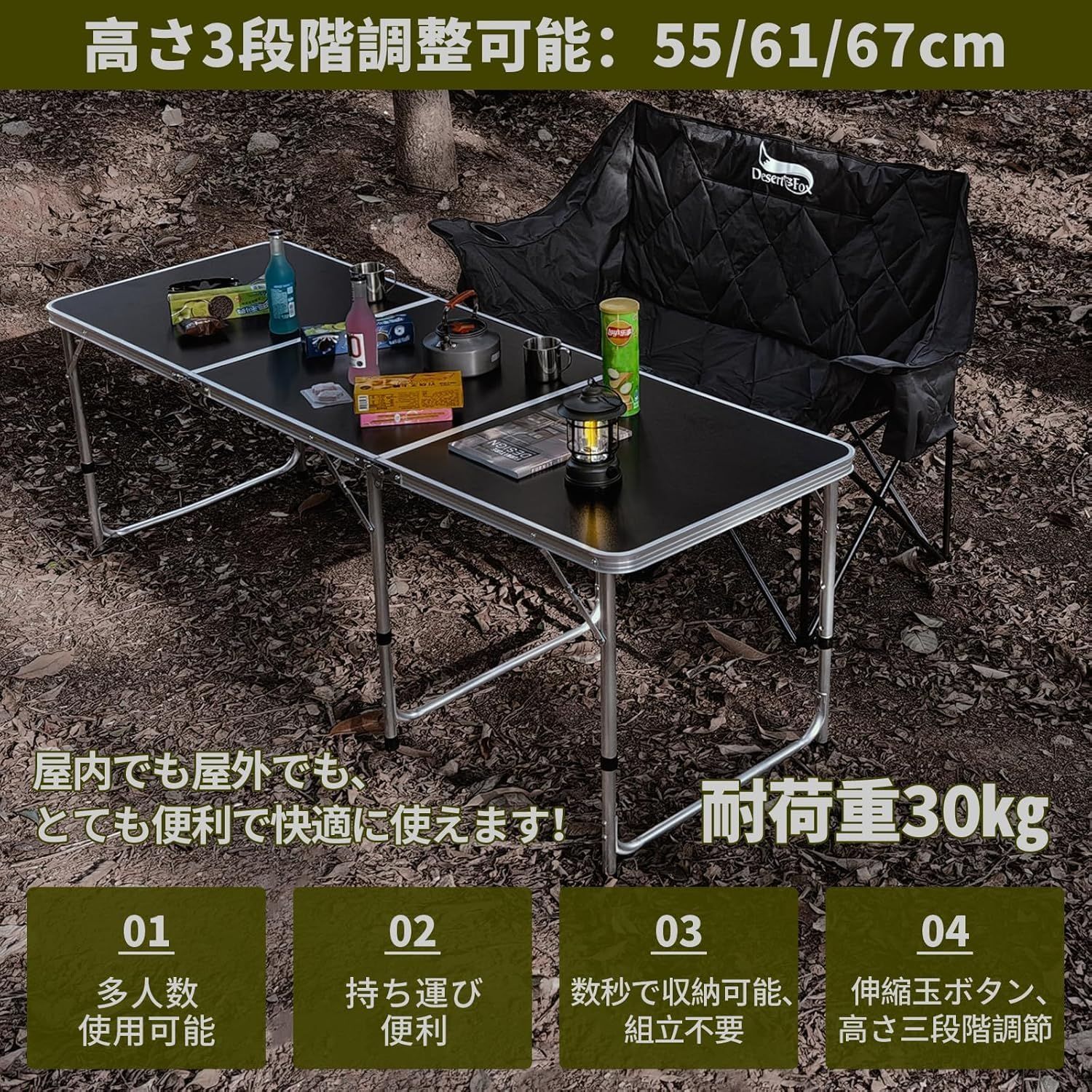 キャンプテーブル アウトドア テーブル 【日本企業】単品/セット 折りたたみ 180CM 3段階高さ調整可能 ピクニック レジャー キャンプ用 折畳み コンパクト 収納 簡単組立LK008(竹シングル)