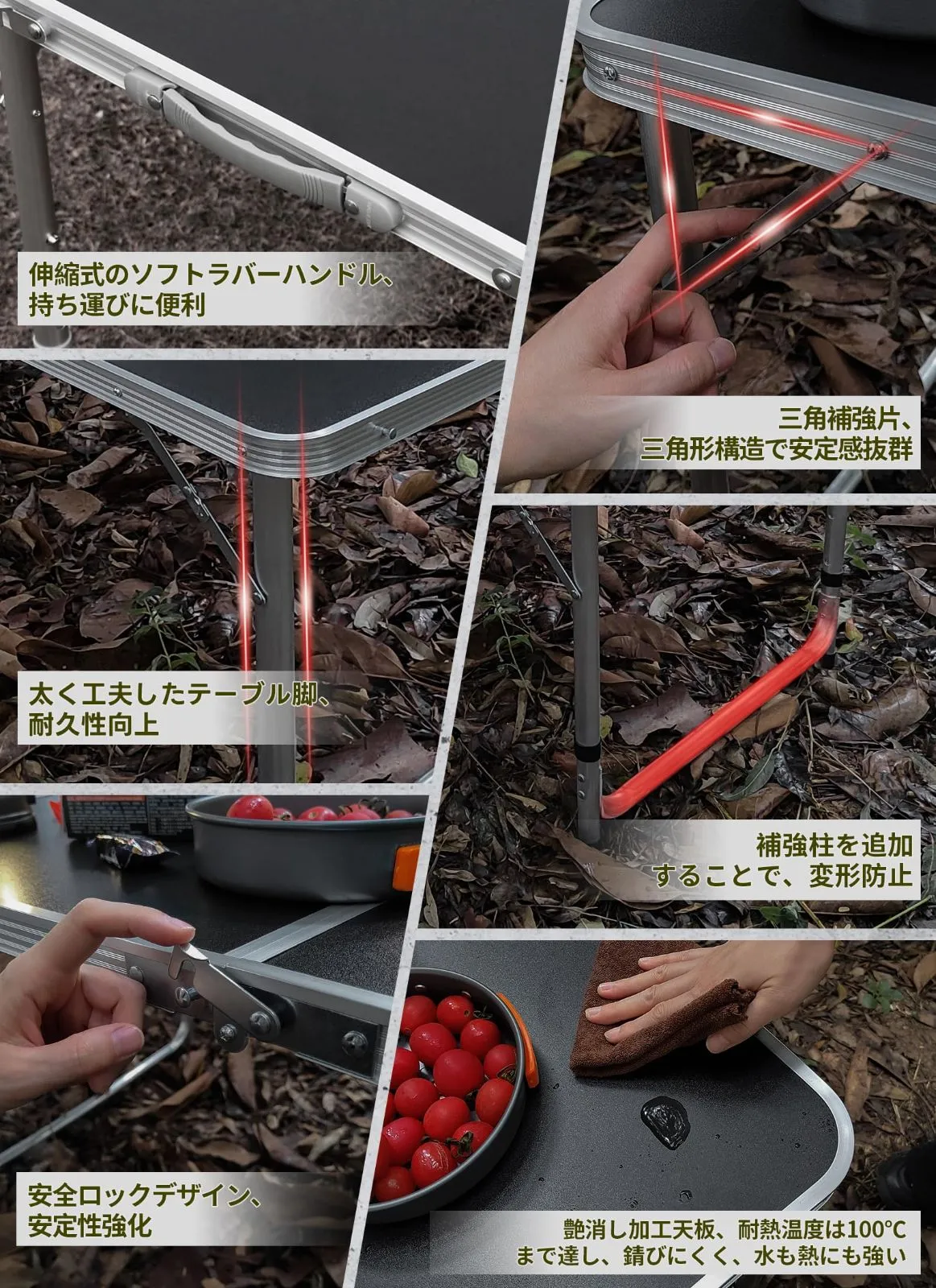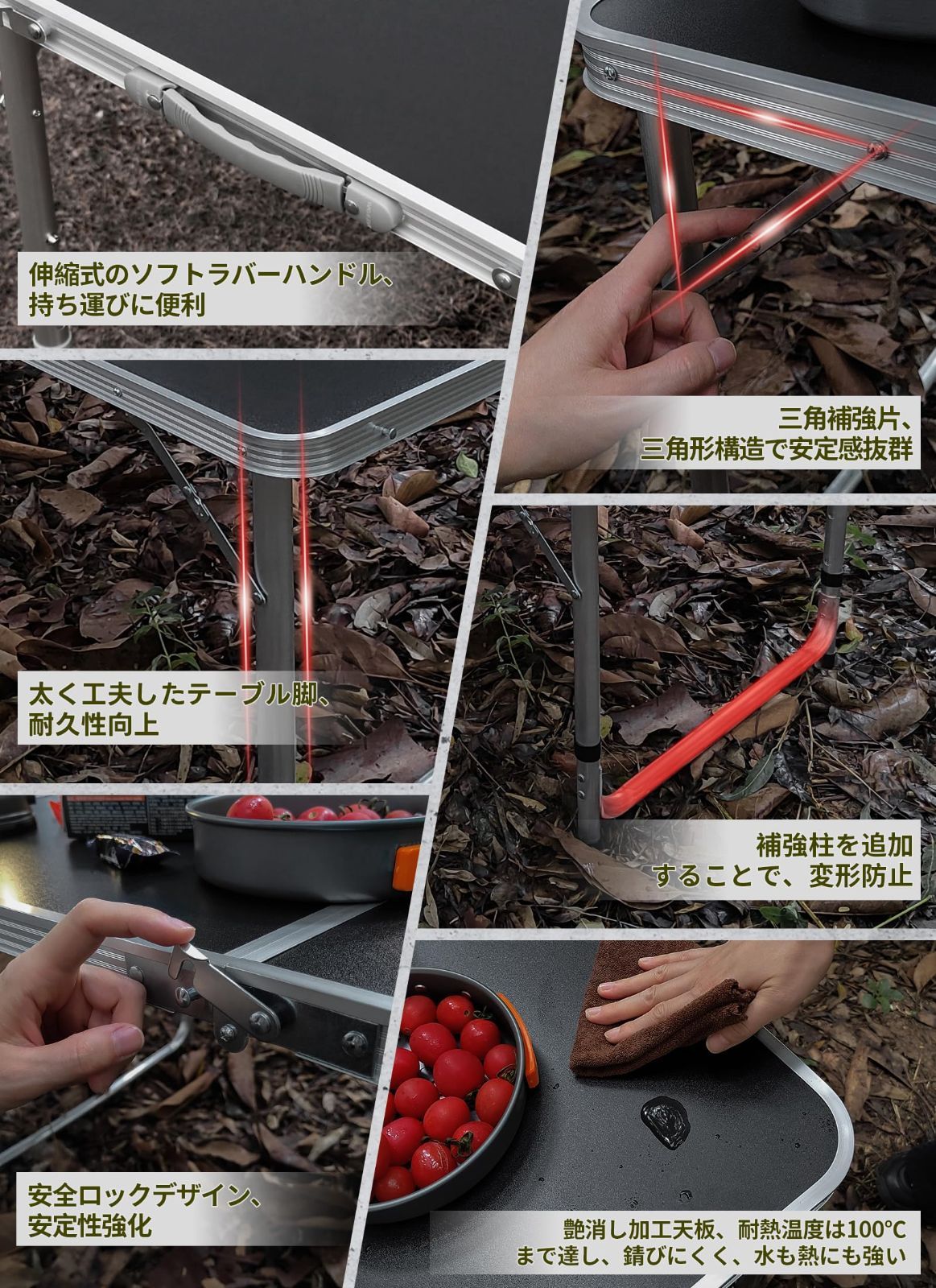 ◆アウトドアキャンプテーブルとして、複数の友人や家族の集まりに対応でき、軽量で持ち運びが簡単、片手で持ち上げることができるため、花見や海辺、バーベキューなどのアウトドア活動にも適しています。
