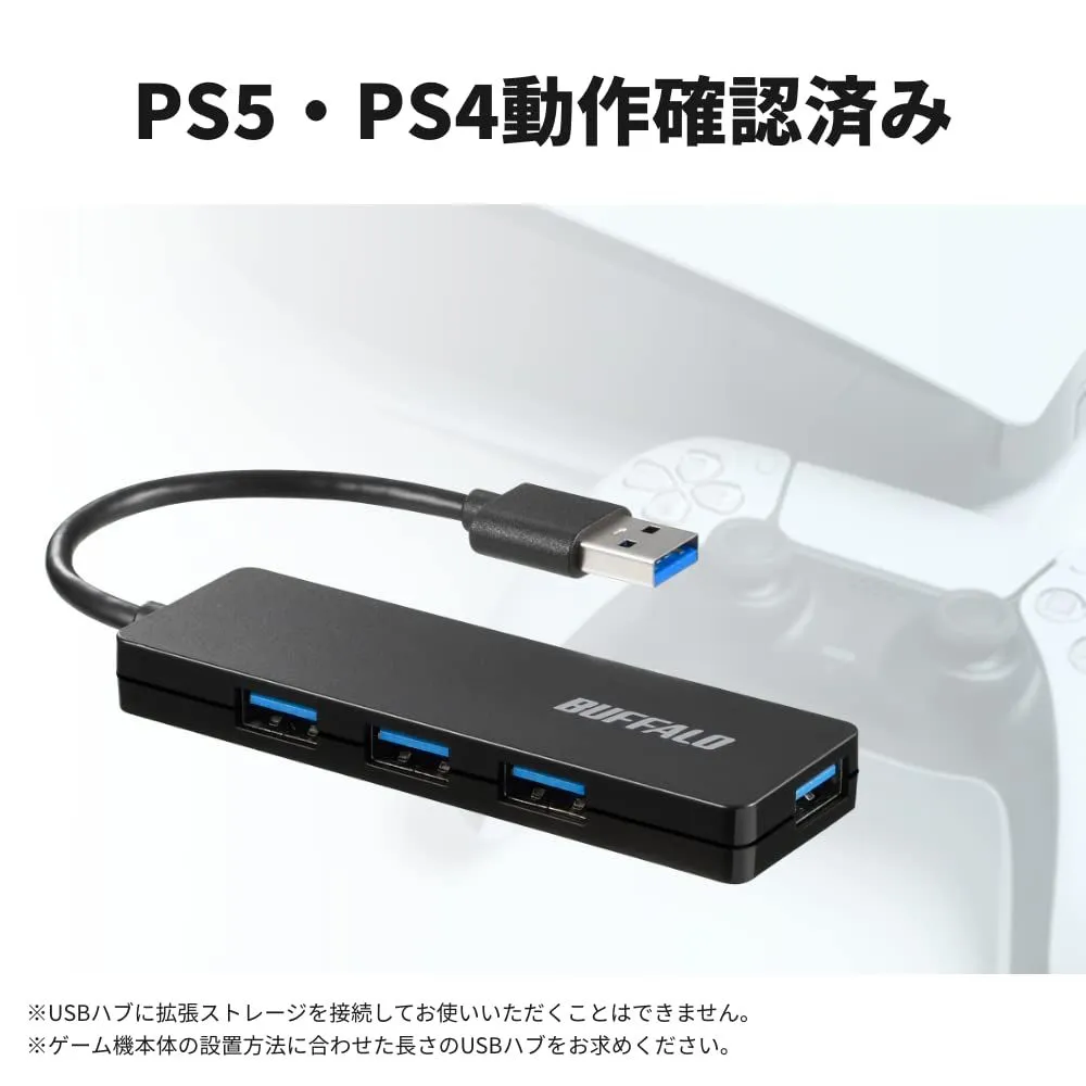 Windows 軽量 Mac バスパワー PS4 4ポート PS5 スリム設計 Chromebook USB3.0 対応 ハブ テレワーク USB 在宅勤務 バッファロー BSH4U125U3BK