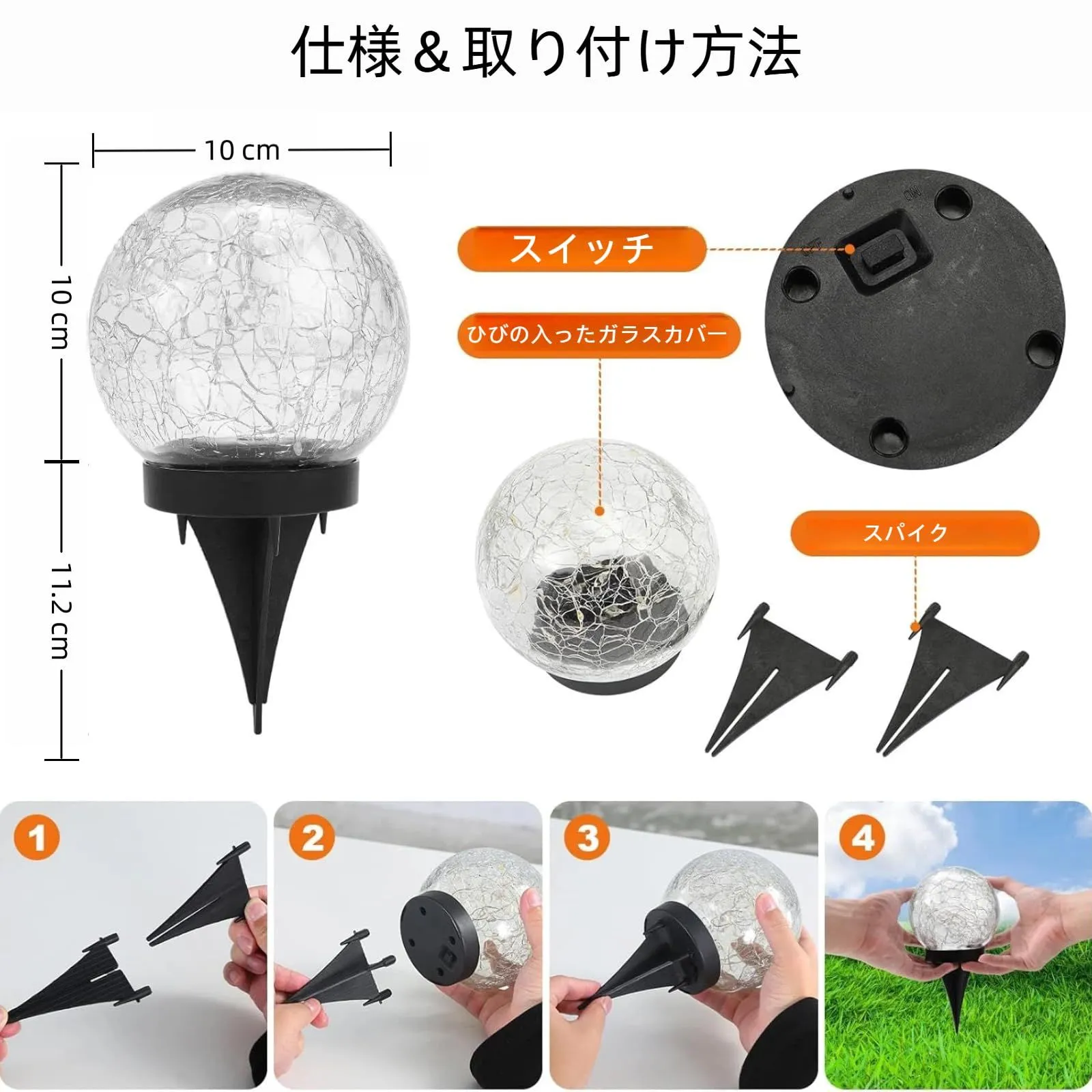 おしゃれ 丸型 ガーデンライト IP65防水【門柱灯・庭園灯ボール 屋外 4個セット】翌朝まで点灯!自動点灯/消灯 庭ライト お庭 ソーラーライト 玄関先 ガーデン 芝生 Ytimmly 花壇など明るく照らす ボールライト
