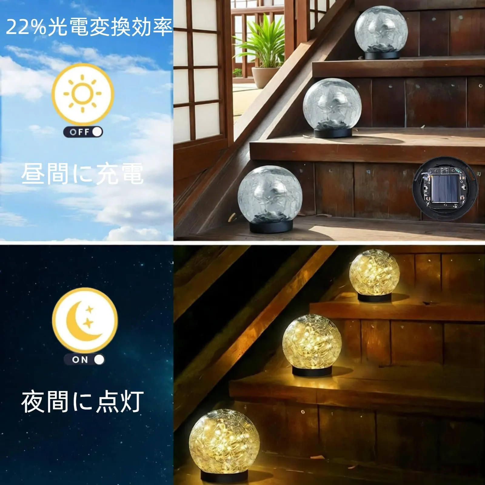 【門柱灯・庭園灯ボール 4個セット】翌朝まで点灯!自動点灯/消灯 庭ライト お庭 玄関先 ガーデン 芝生 花壇など明るく照らす ボールライト