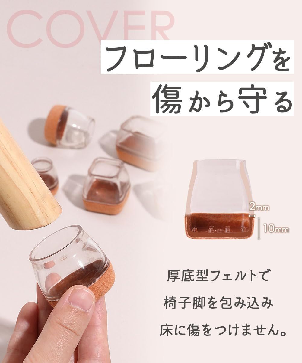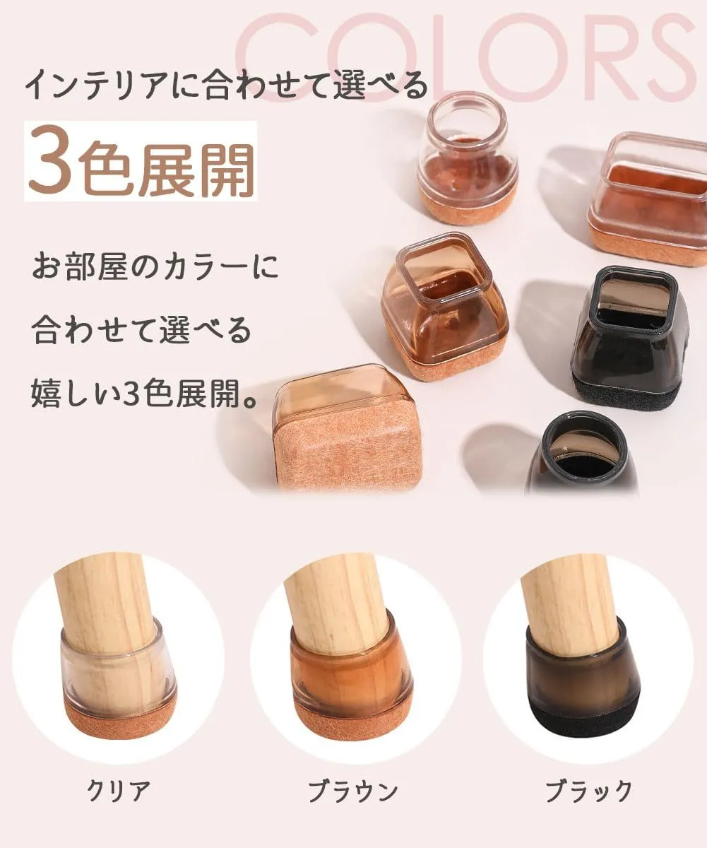 おしゃれ 正方形 可愛い 角脚 かわいい 丸脚 脱げにくい 丸型 脚キャップ チェアソックス キャップ 茶 24個 黒 8個 クリア 4個 北欧 4脚分 透明 16個セット 傷防止 騒音防止 脚カバー 床保護 足カバー 床キズ イス 防止 シリコン (16個セ