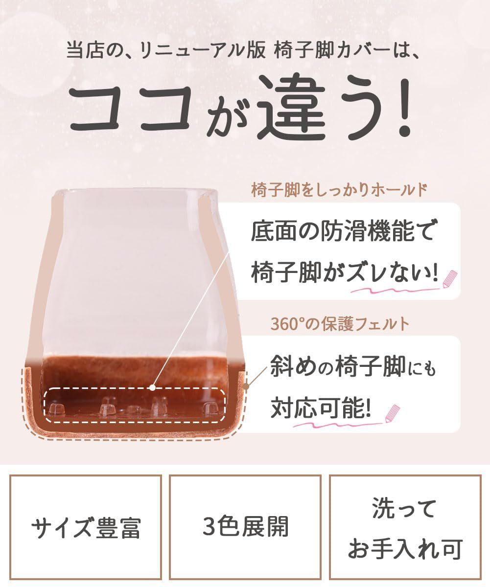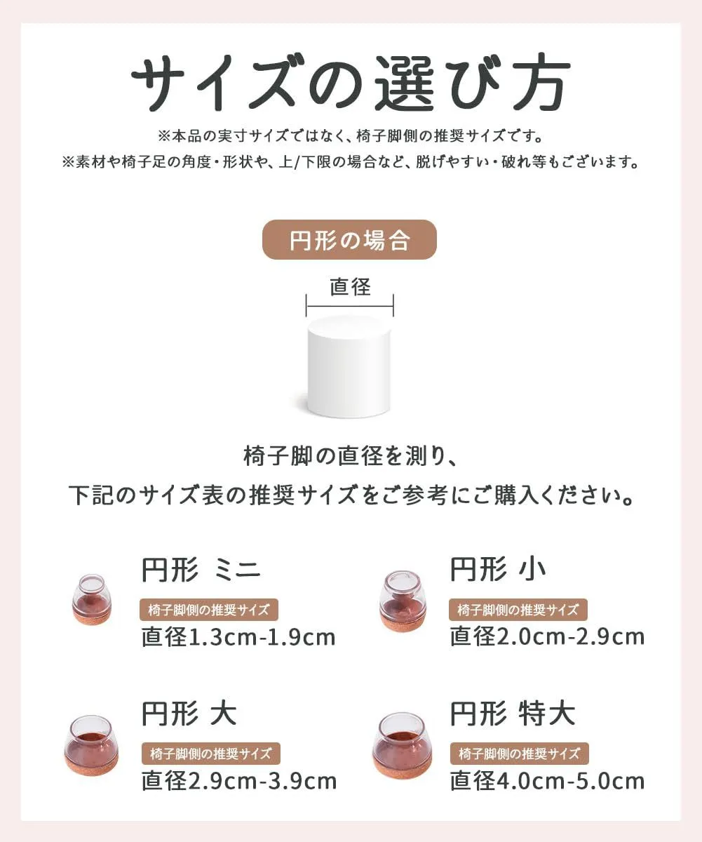【小】) シンプルで主張しすぎないシリコン素材の椅子脚カバーです。キャップで程よく伸びる素材なので簡単装着。レトロなブラウン色も新登場でより家具やインテリアに馴染みます。 厚みやクッション性のある仕様で、椅子による日々の騒音防止や床・フローリングのキズ防止に最適です。 サーモプラスチックエストラマー(TPE) プラスチックとゴムの中間の性質を持つシリコン機能素材 クリア(半透明)/ブラウン(半透明)/ブラック(半透明) シンプルで主張しすぎないシリコン素材の椅子脚カバーです。キャップで程よく伸びる素材なので簡単装着。レトロなブラウン色も新登場でより家具やインテリアに馴染みます。 厚みやクッション性のある仕様で、椅子による日々の騒音防止や床・フローリングのキズ防止に最適です。 最後までご確認頂き誠にありがとうございました。 上記をご確認頂き、ご購入いただけましたら幸いです。 何かご不明な点がございましたらお気軽にメッセージからお問い合わせ下さい。