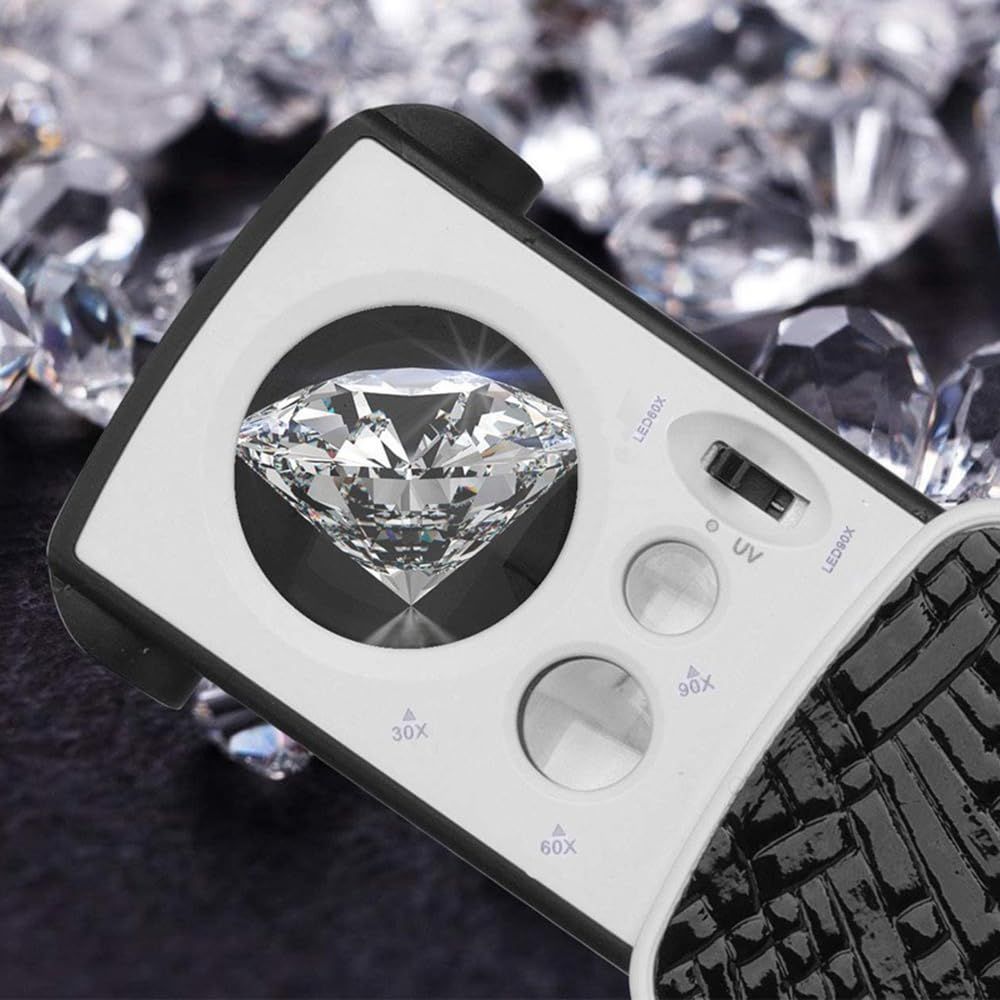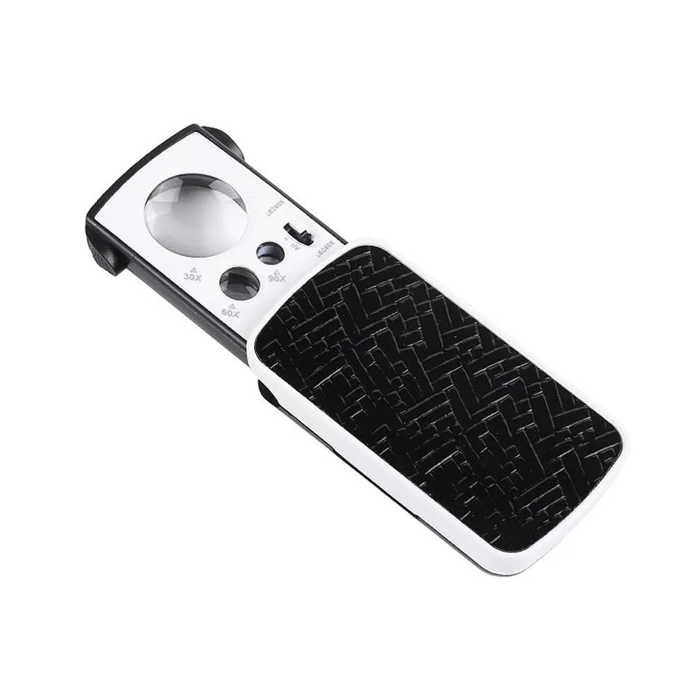 LOYELEY ジュエリールーペ 倍率30倍/60倍/90倍 携帯ルーペ 拡大鏡 3種類レンズ LEDライト ブラックライト付き 軽くて持ちやすい ジュエリー鑑定 校正 精密作業用 ブラック
